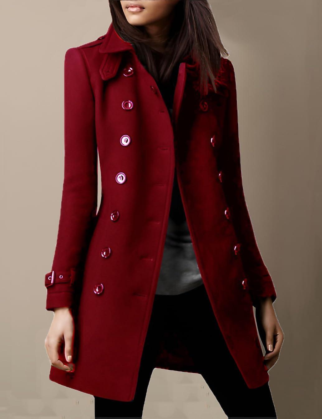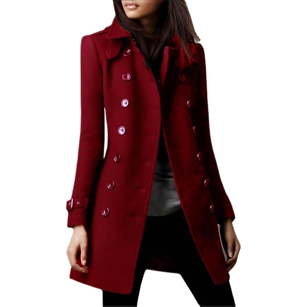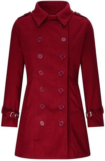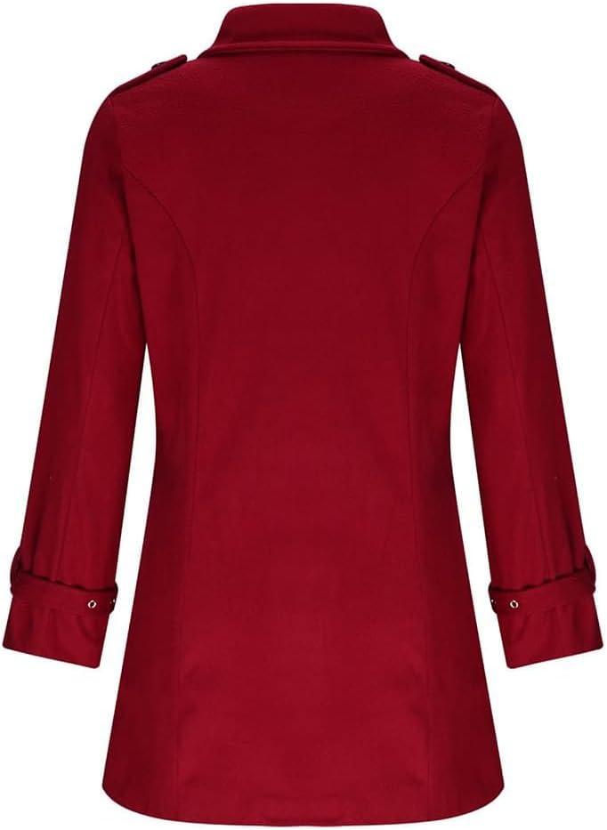 IDEALSANXUN Double Breasted Wool Coats for Women Trendy Fall Winter Mid Pea Trench Coat Blazer Jackets Overcoat(Wine)