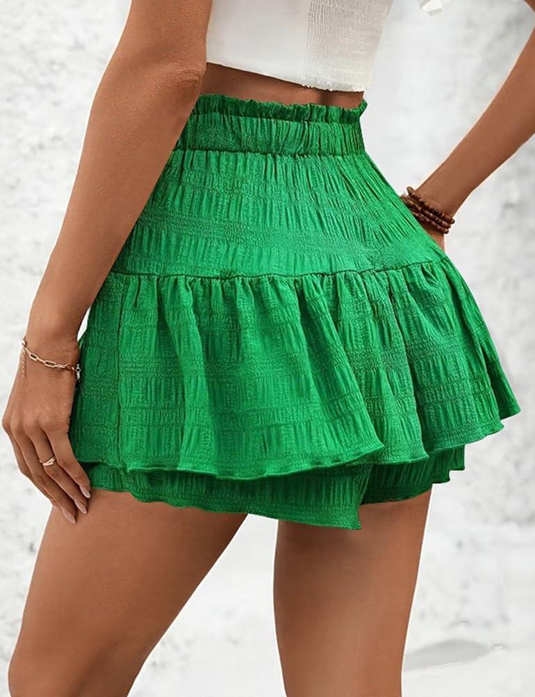 IDEALSANXUN Flowy Shorts for Women Spring Summer Ruffle Tiered Skorts Elastic High Waist Drawstring Golf Tennis Mini Skirt(Green)