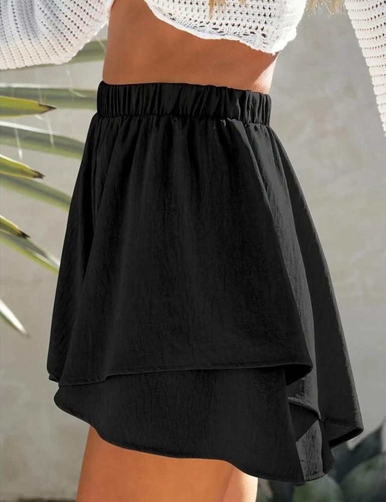 IDEALSANXUN Flowy Shorts for Women Spring Summer Ruffle Tiered Skorts Elastic High Waisted Casual Cute Beach Mini Skirt(Black)