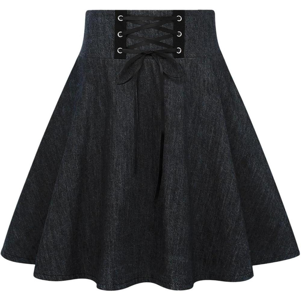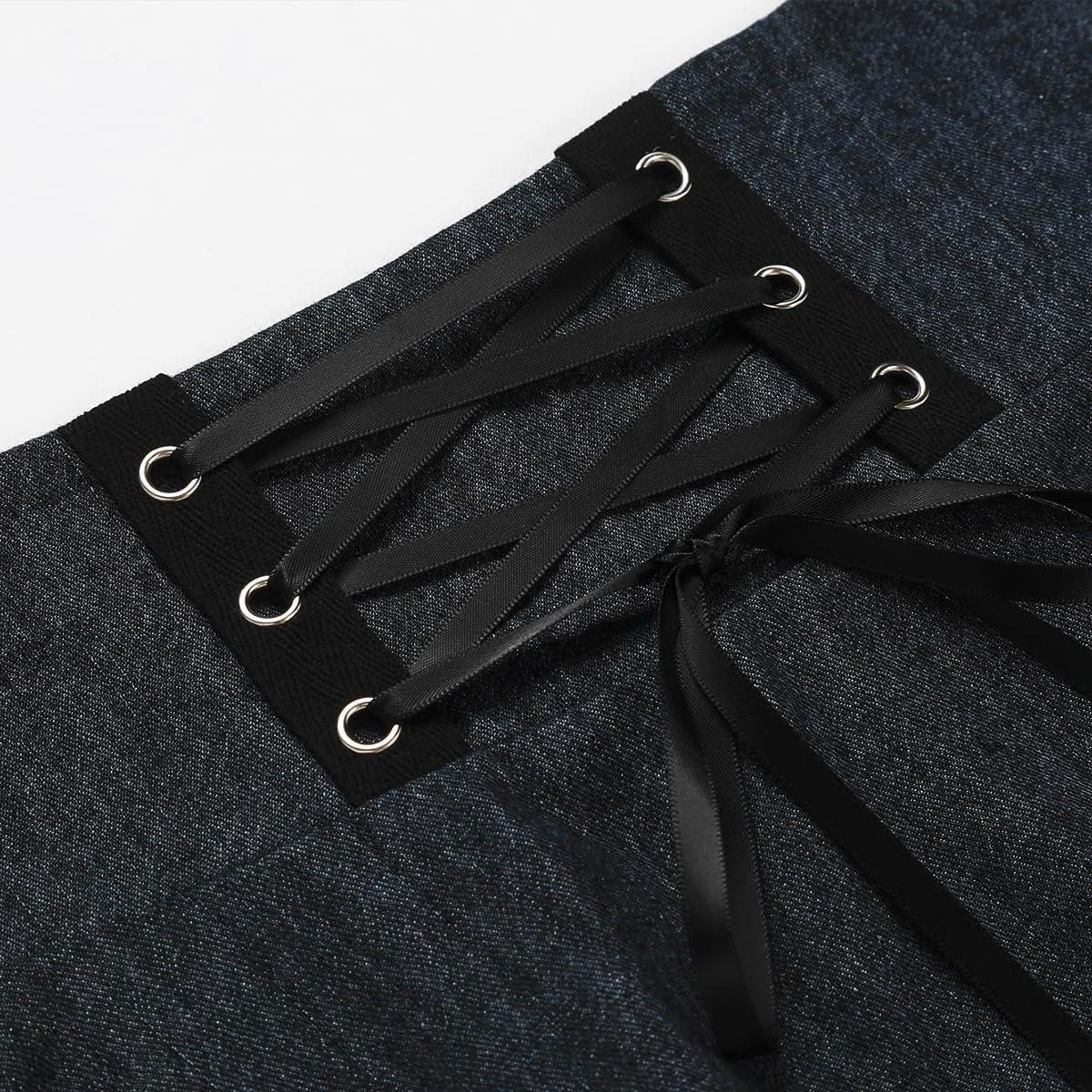 IDEALSANXUN Gothic Plaid Mini Skirts for Women Short High Waist Plaid Skirts(Denim Black)