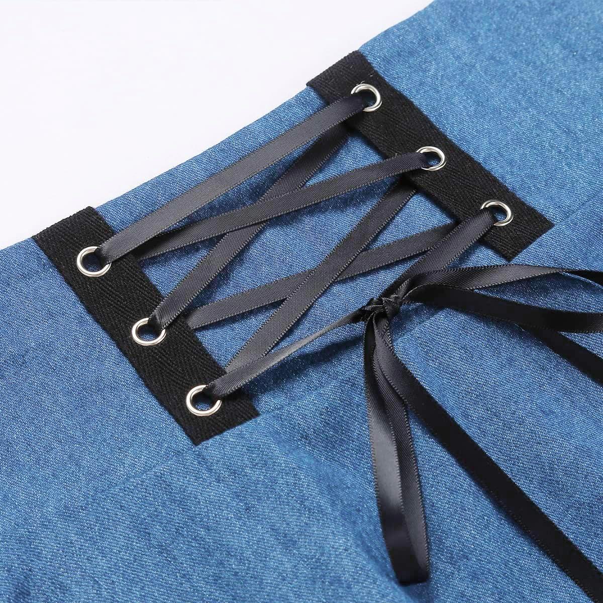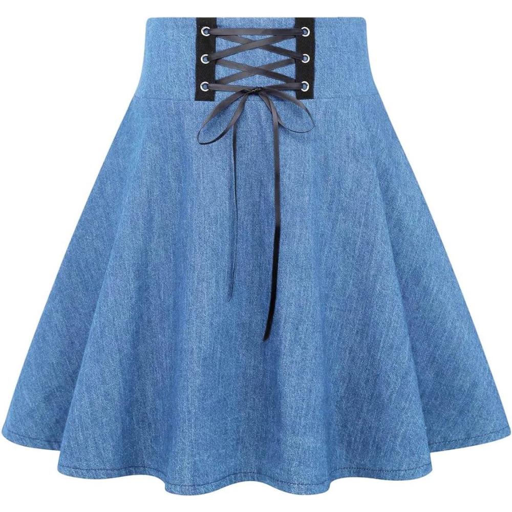 imageIDEALSANXUN Gothic Plaid Mini Skirts for Women Short High Waist Plaid SkirtsDenim Light Blue