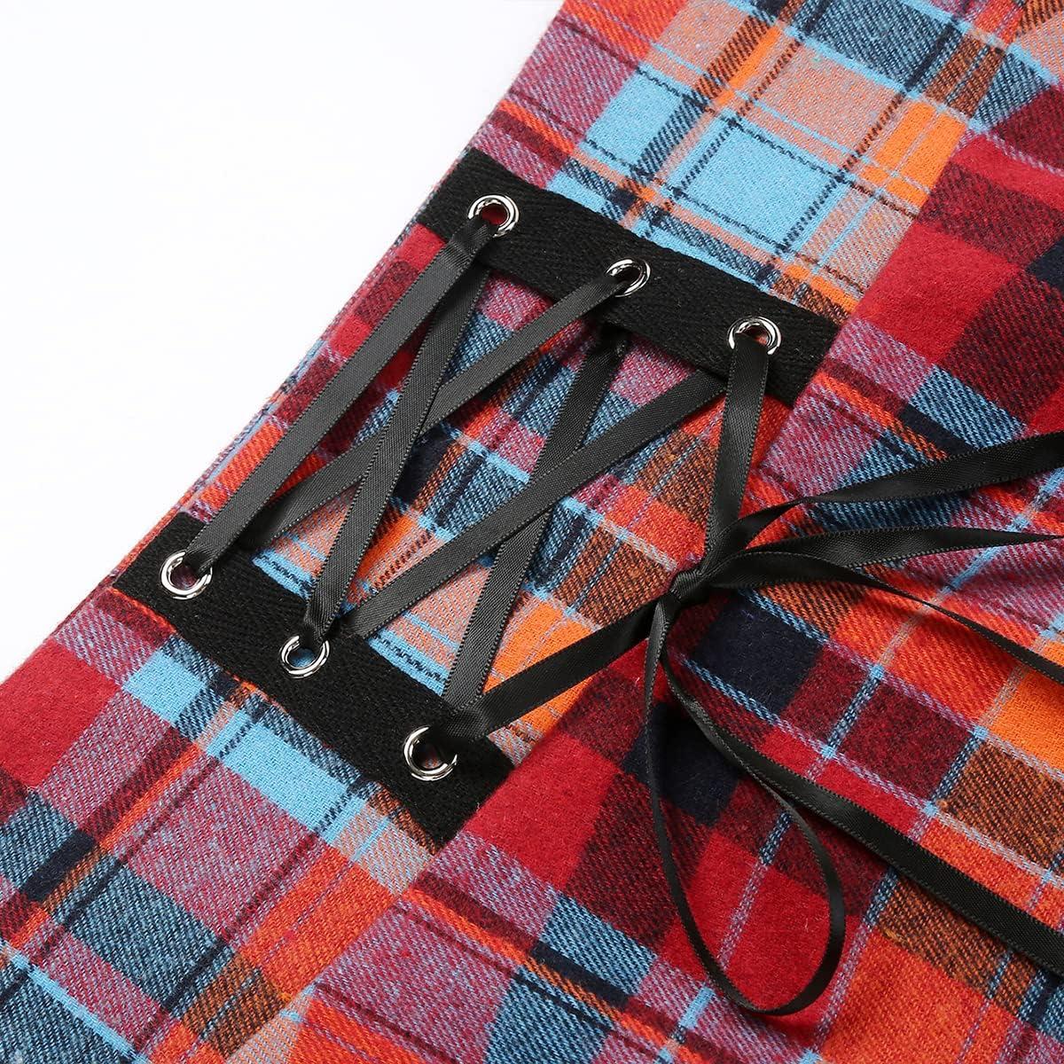 IDEALSANXUN Gothic Plaid Mini Skirts for Women Short High Waist Plaid Skirts(Multicolor)