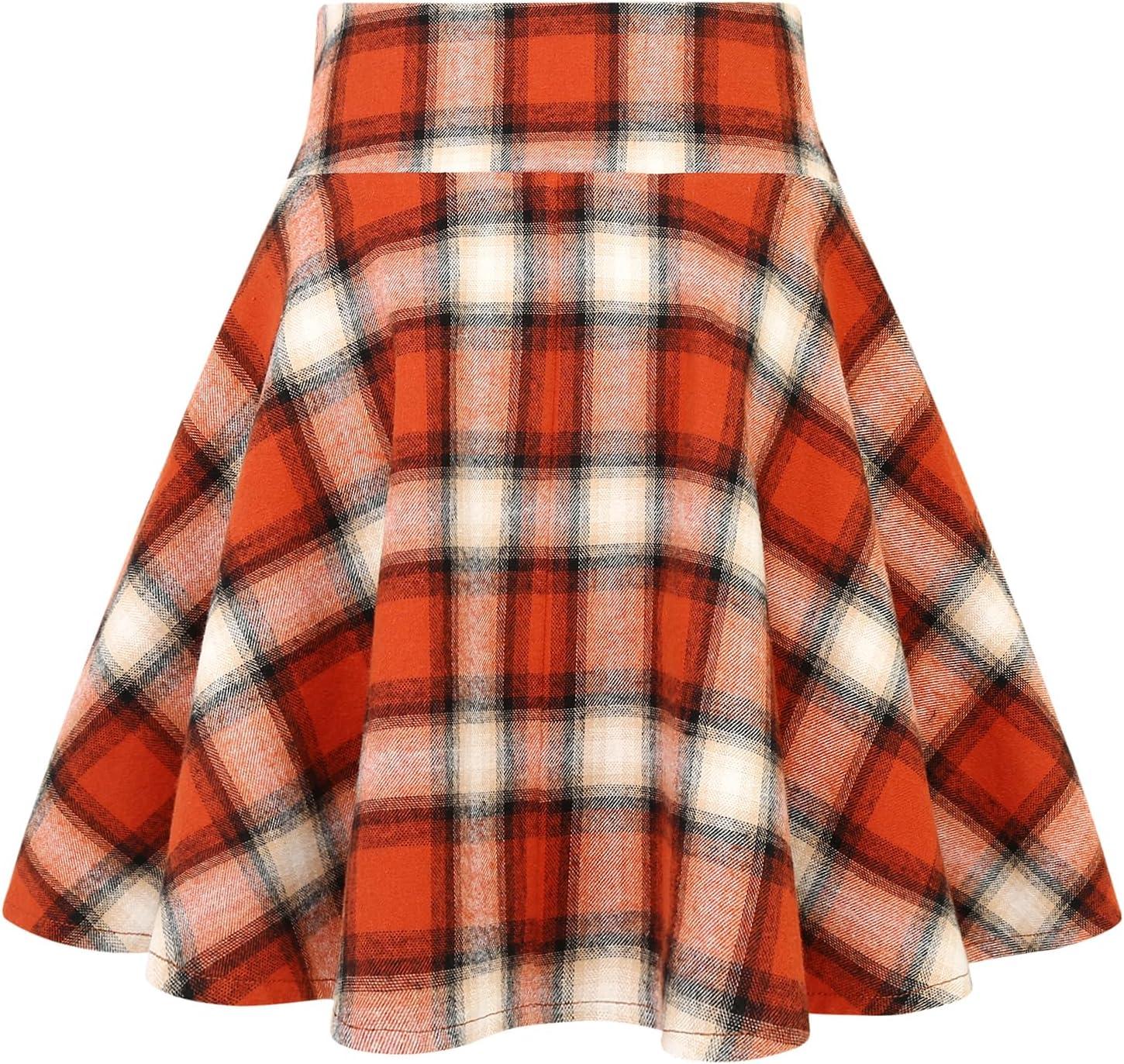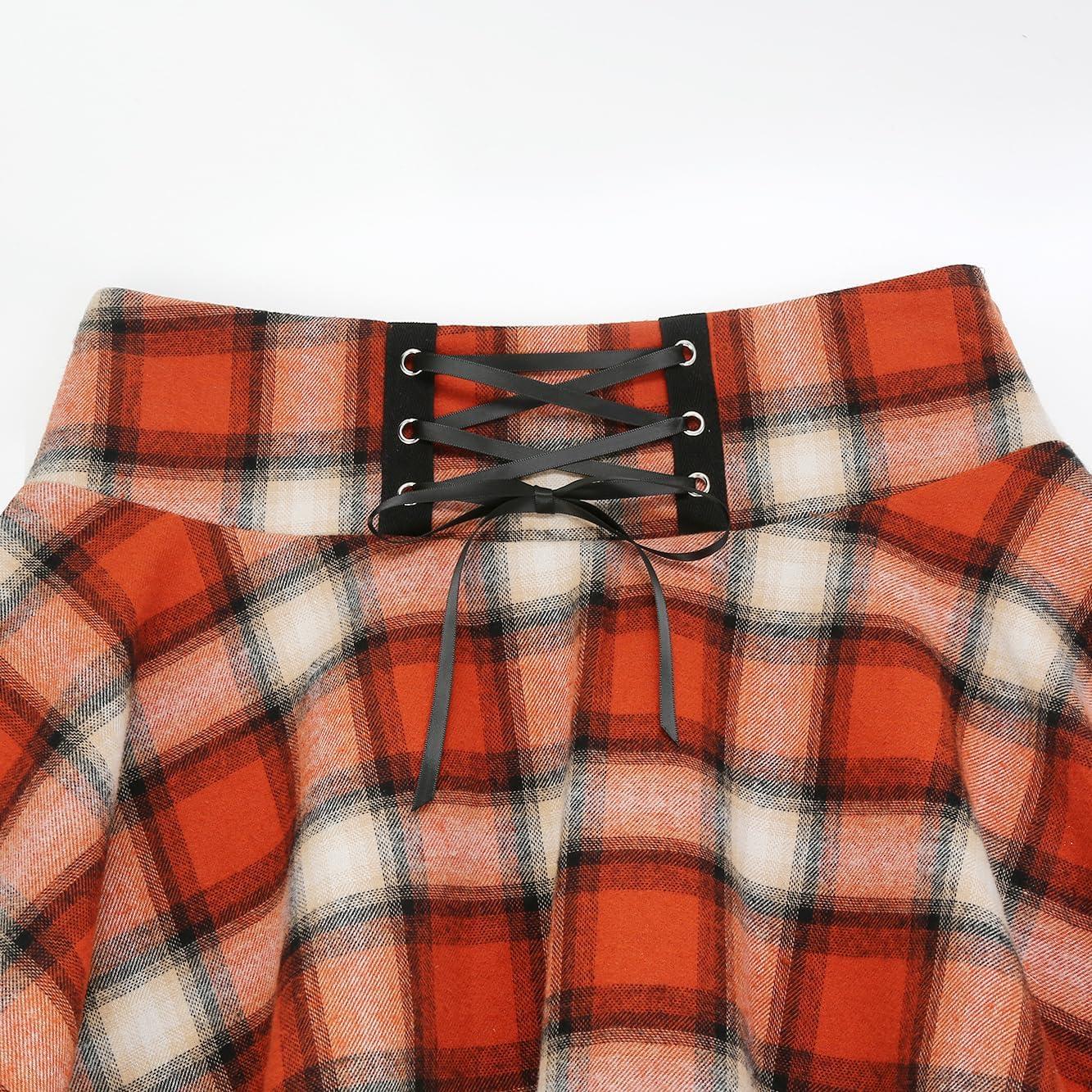 IDEALSANXUN Gothic Plaid Mini Skirts for Women Short High Waist Plaid Skirts(Orange Beige)