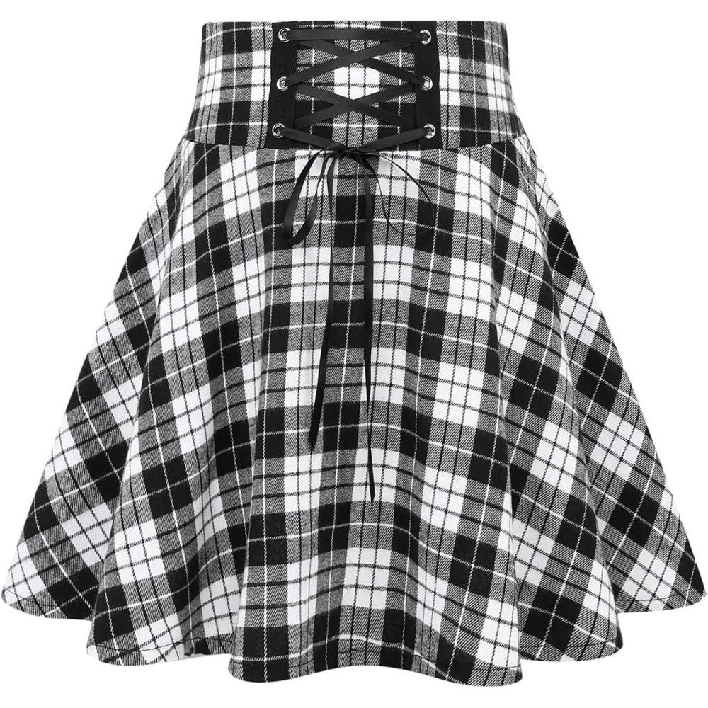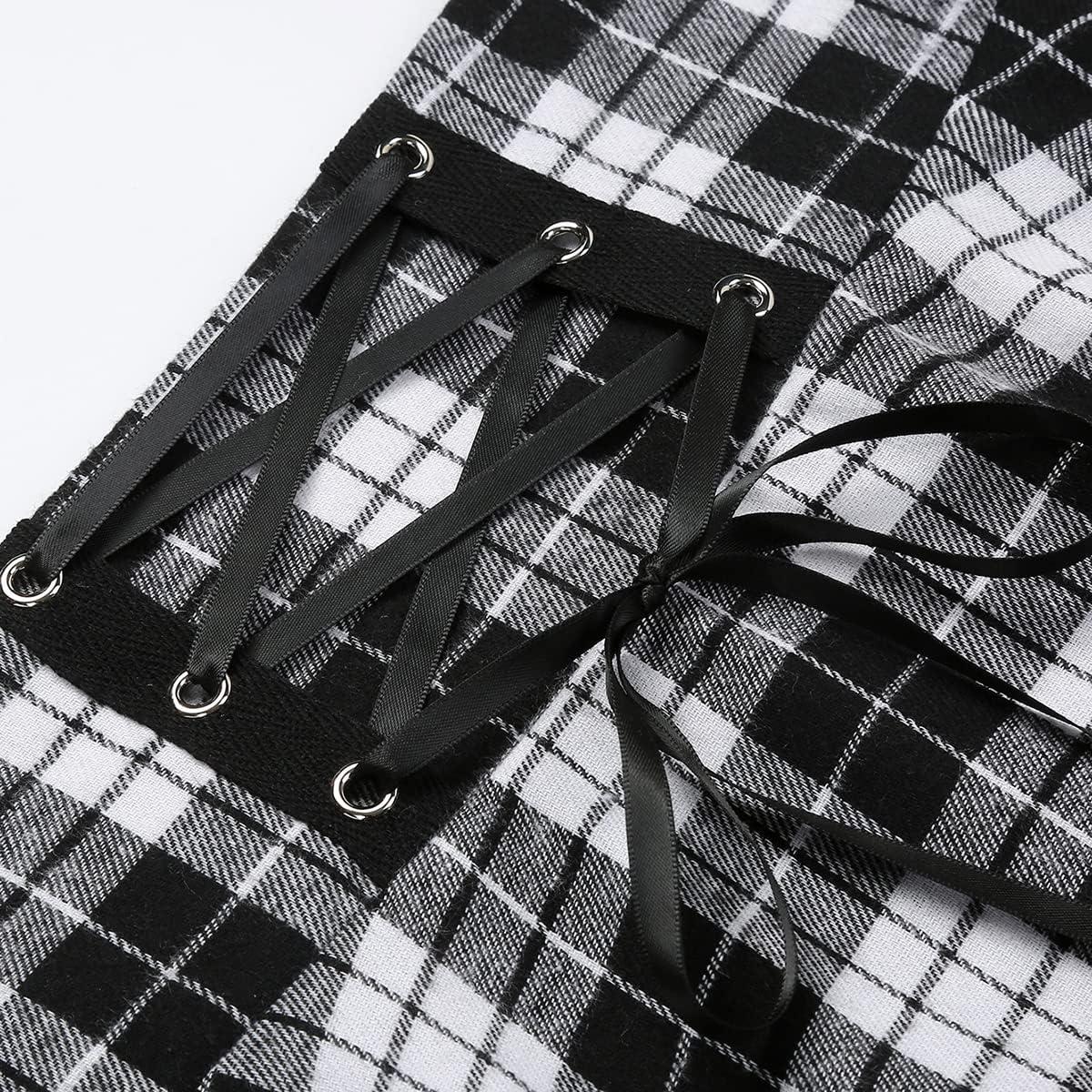 IDEALSANXUN Gothic Plaid Mini Skirts for Women Short High Waist Plaid Skirts(Plaid Black New)