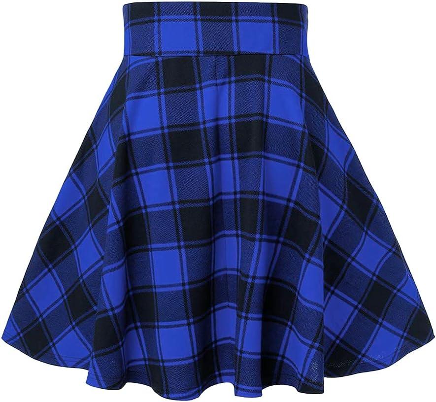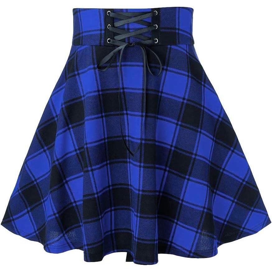 IDEALSANXUN Gothic Plaid Mini Skirts for Women Short High Waist Plaid Skirts(Plaid Blue)