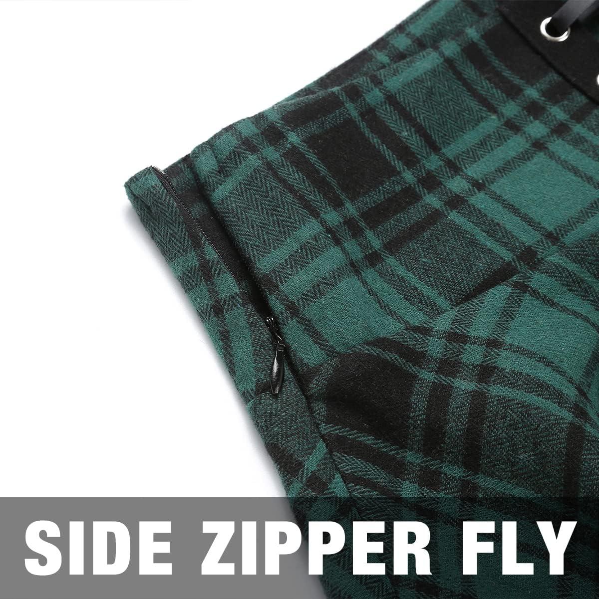 IDEALSANXUN Gothic Plaid Mini Skirts for Women Short High Waist Plaid Skirts(Plaid Green 01)