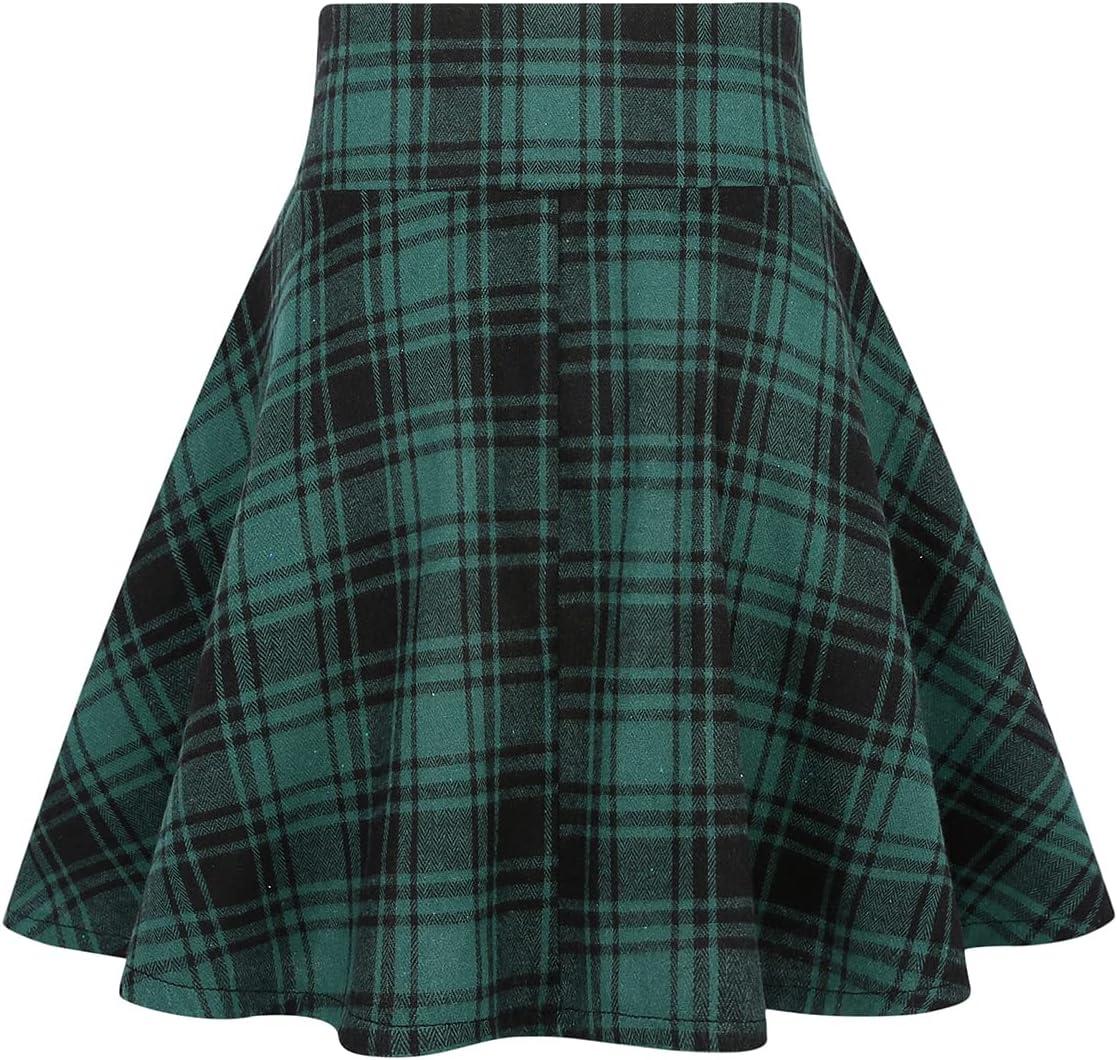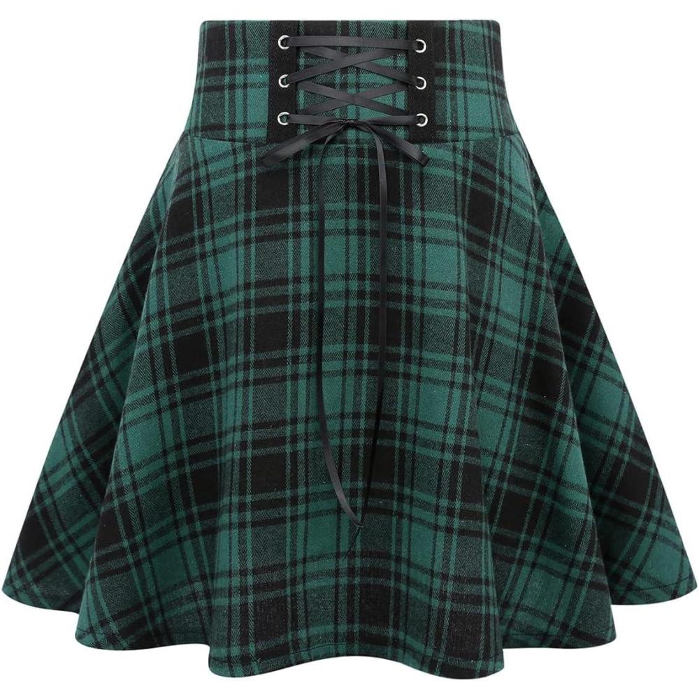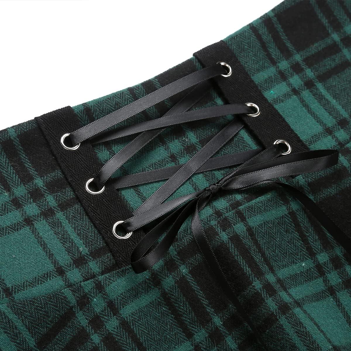 IDEALSANXUN Gothic Plaid Mini Skirts for Women Short High Waist Plaid Skirts(Plaid Green 02)