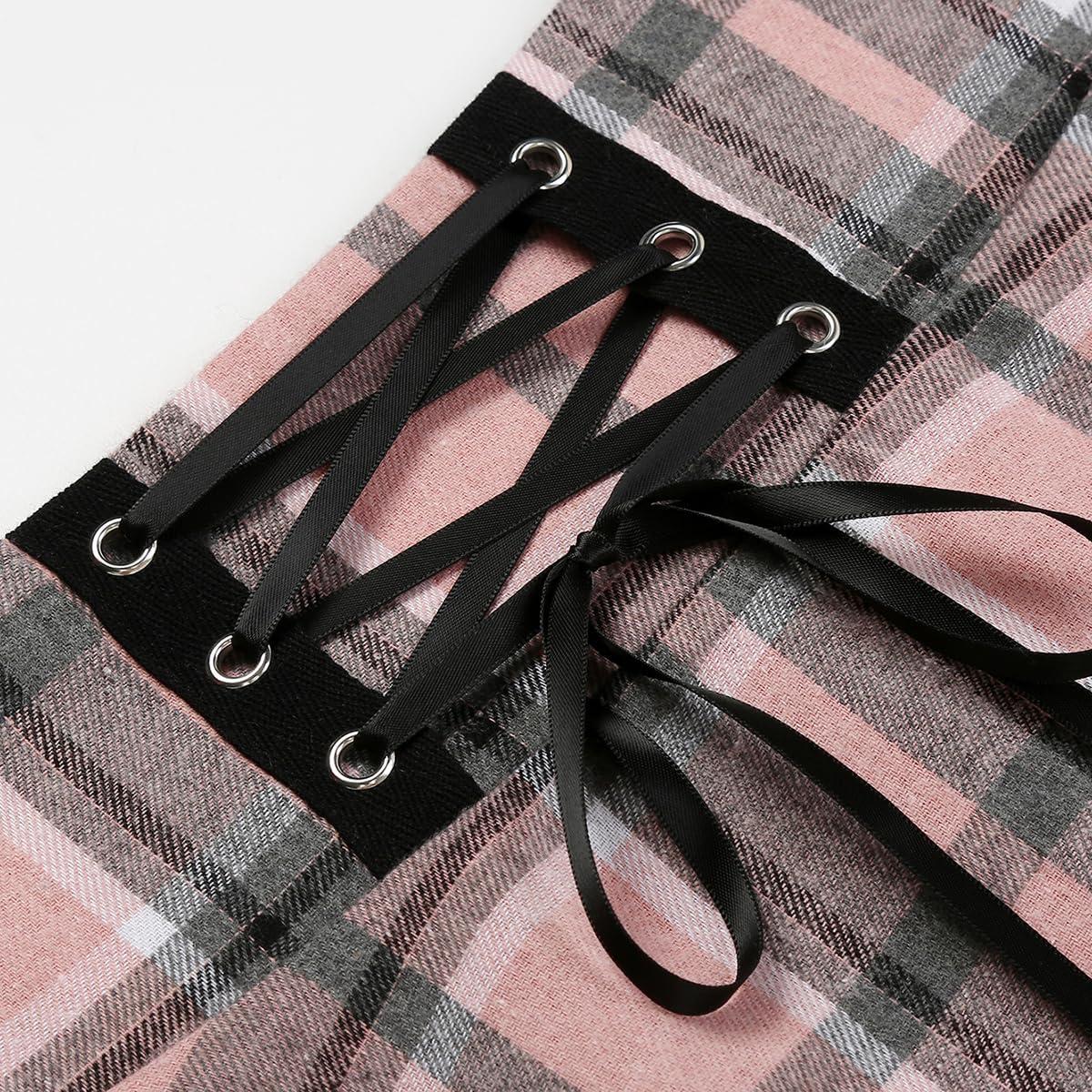 IDEALSANXUN Gothic Plaid Mini Skirts for Women Short High Waist Plaid Skirts(Plaid Pink 02)