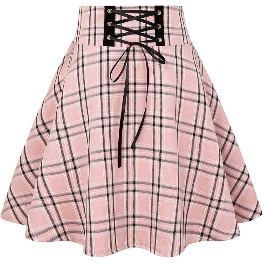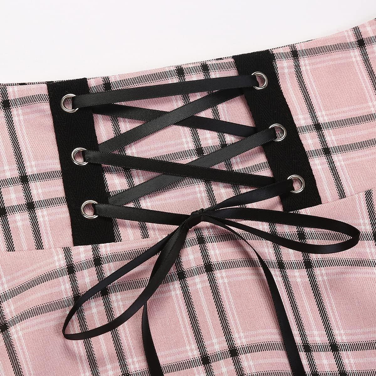 IDEALSANXUN Gothic Plaid Mini Skirts for Women Short High Waist Plaid Skirts(Plaid Pink)