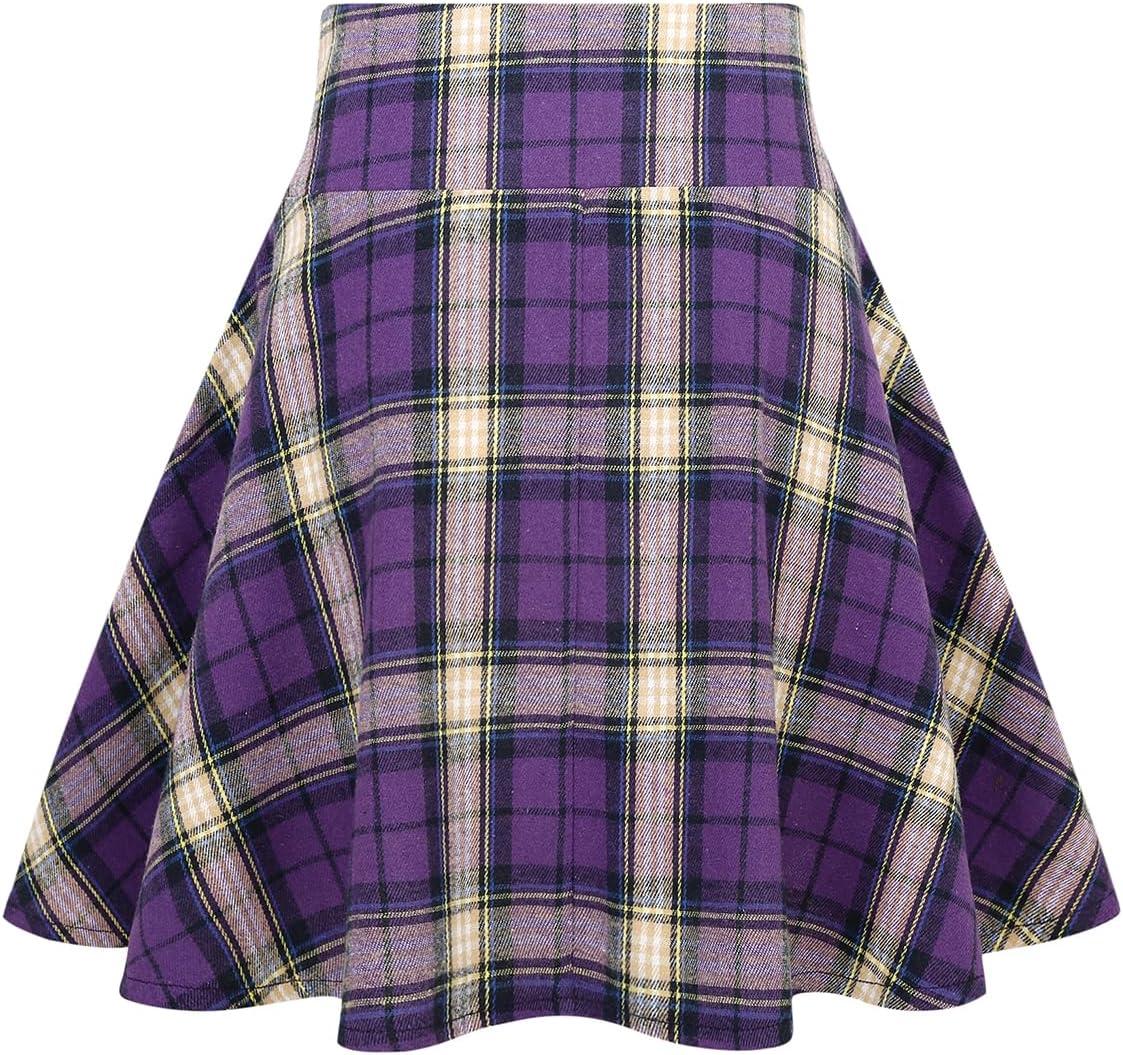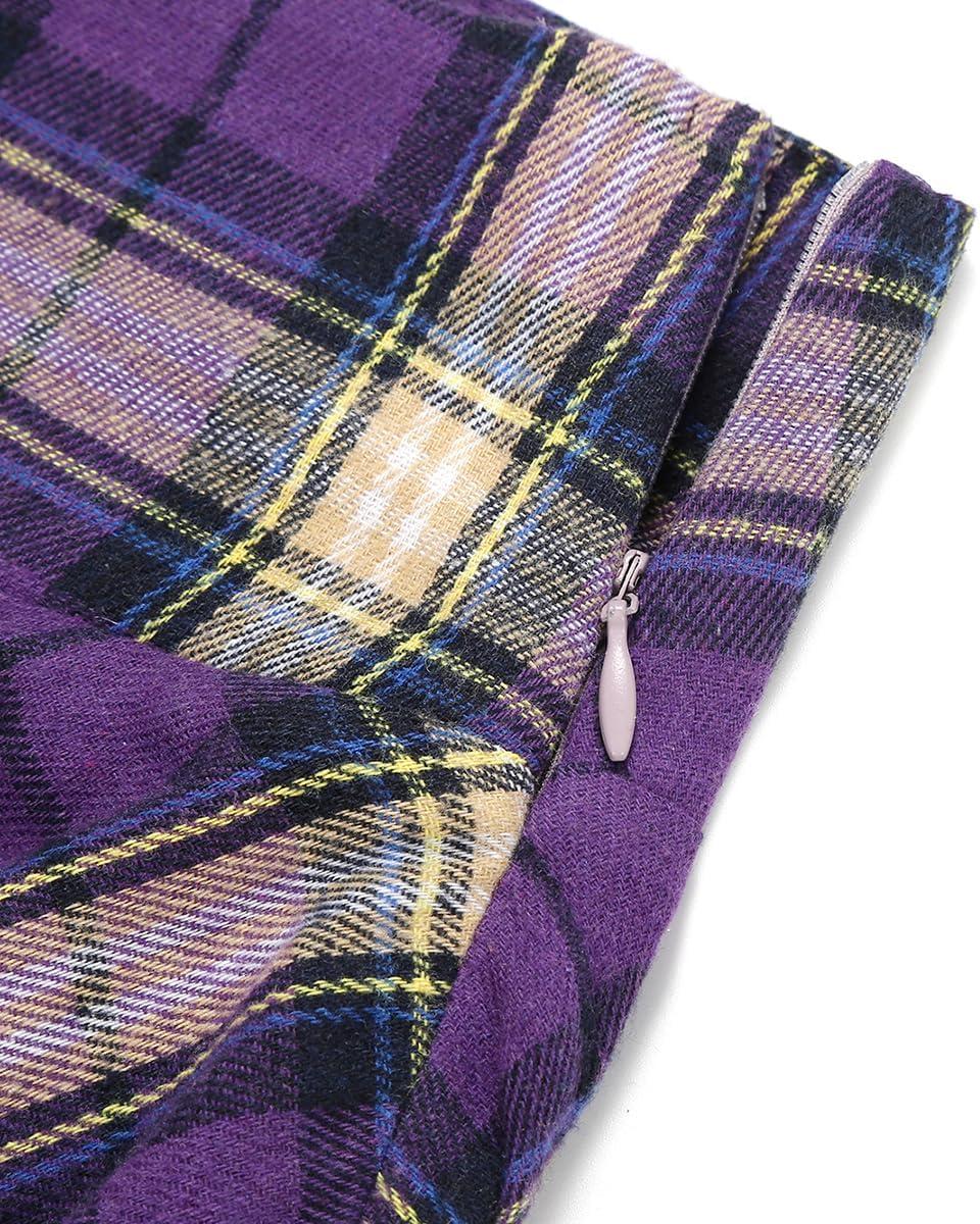 IDEALSANXUN Gothic Plaid Mini Skirts for Women Short High Waist Plaid Skirts(Plaid Purple 01)