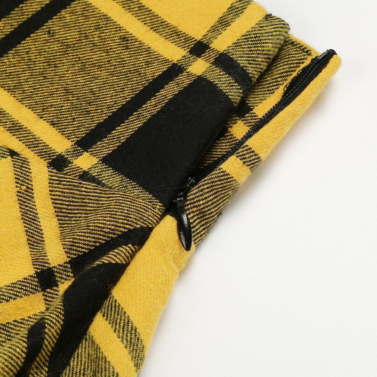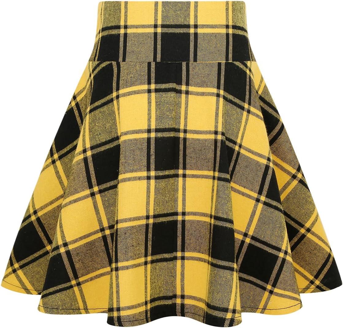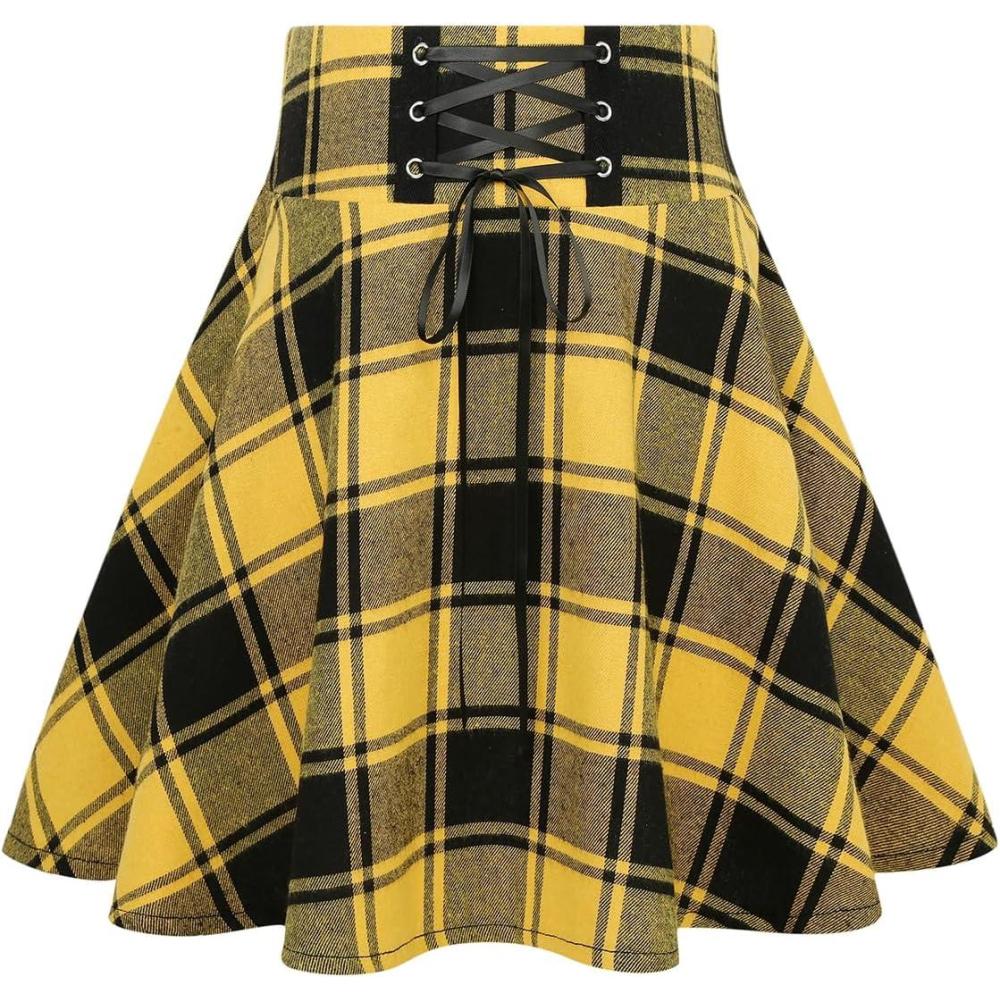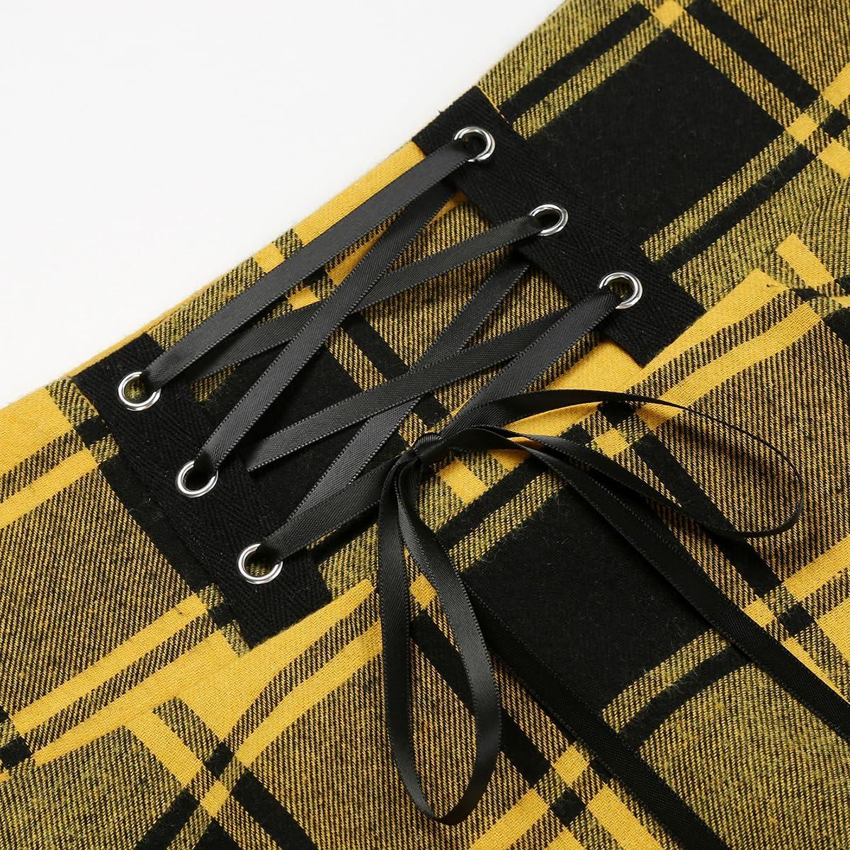 IDEALSANXUN Gothic Plaid Mini Skirts for Women Short High Waist Plaid Skirts(Plaid Yellow 01)