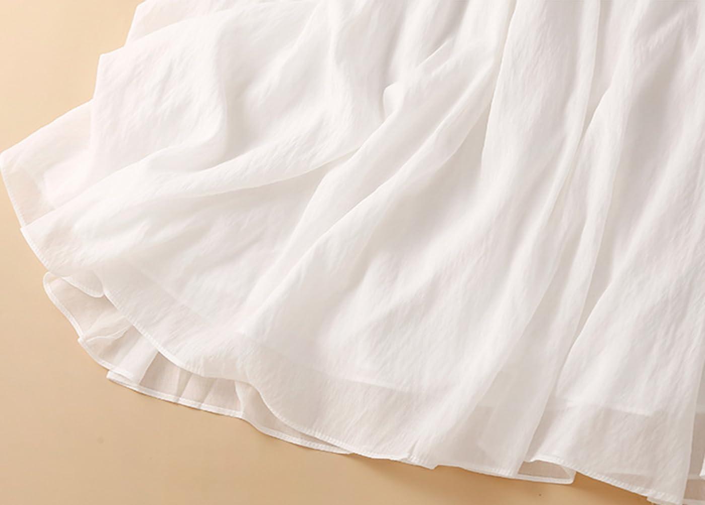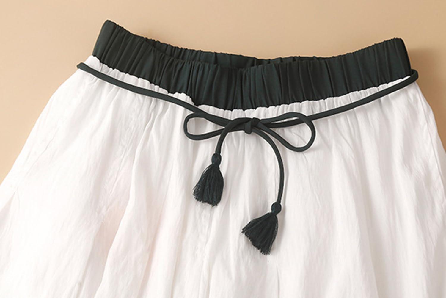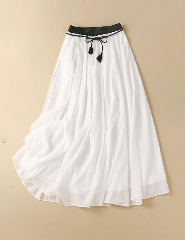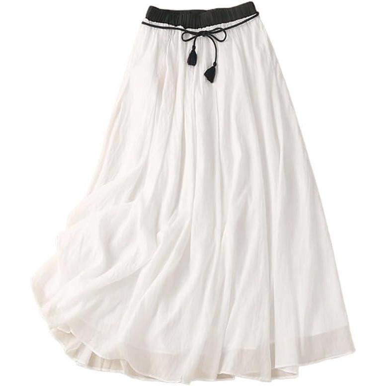 IDEALSANXUN Linen Skirts for Women Casual Lightweight 2024 Summer Vintage A Line Drawstring Elastic High Waist Midi Skirts(White)