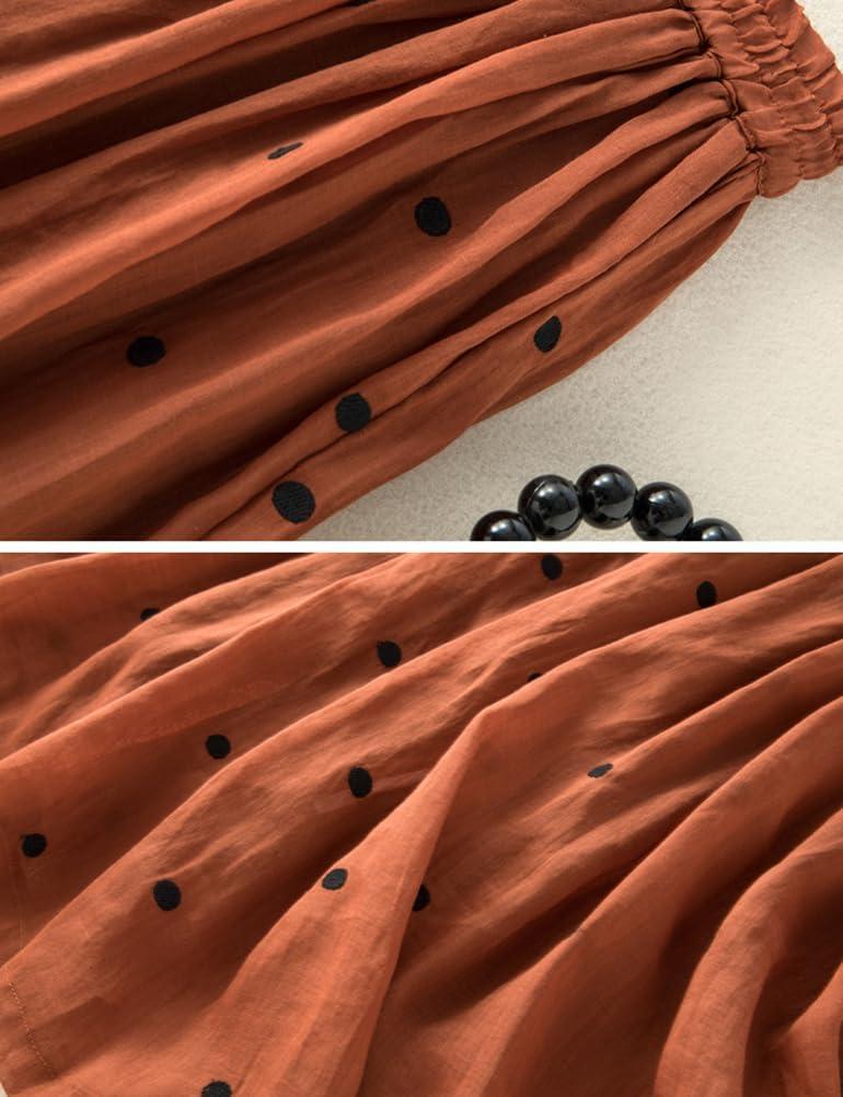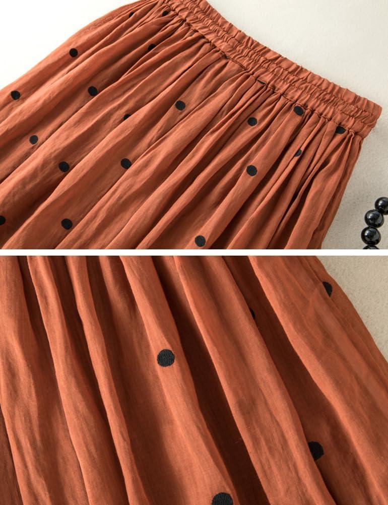 IDEALSANXUN Linen Skirts for Women Spring Summer A Line Flowy Casual Elastic High Waisted Polka Dot Midi Skirt(Orange)
