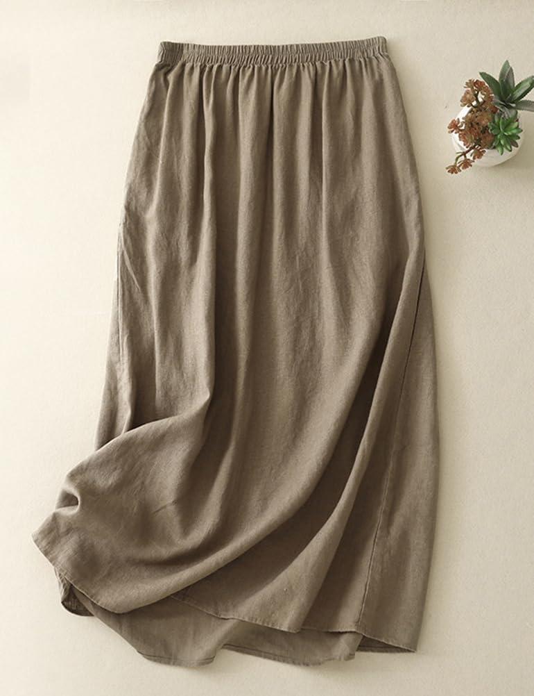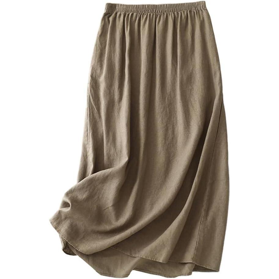 IDEALSANXUN Linen Skirts for Women Spring Summer Outfits A Line Elastic High Waisted Casual Lightweight Flowy Midi Skirt(Coffee)