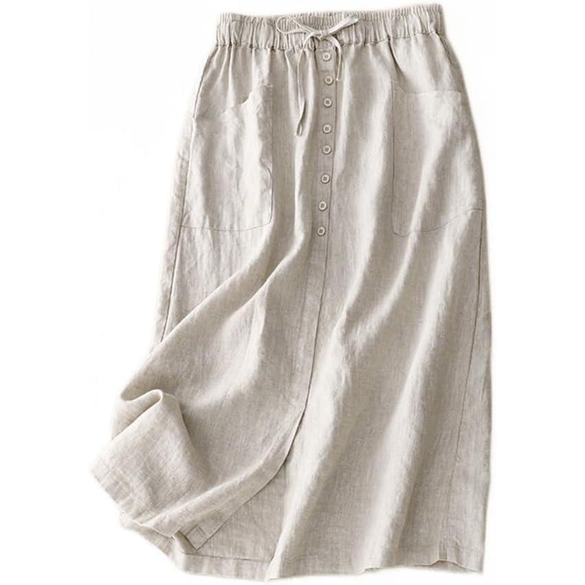 IDEALSANXUN Linen Skirts for Women Summer A Line Flowy Casual Drawstring High Waist Button Down Midi Skirts with Slit(Beige)