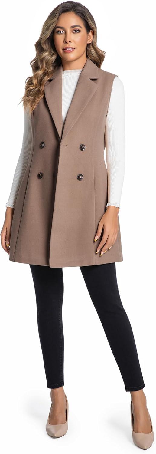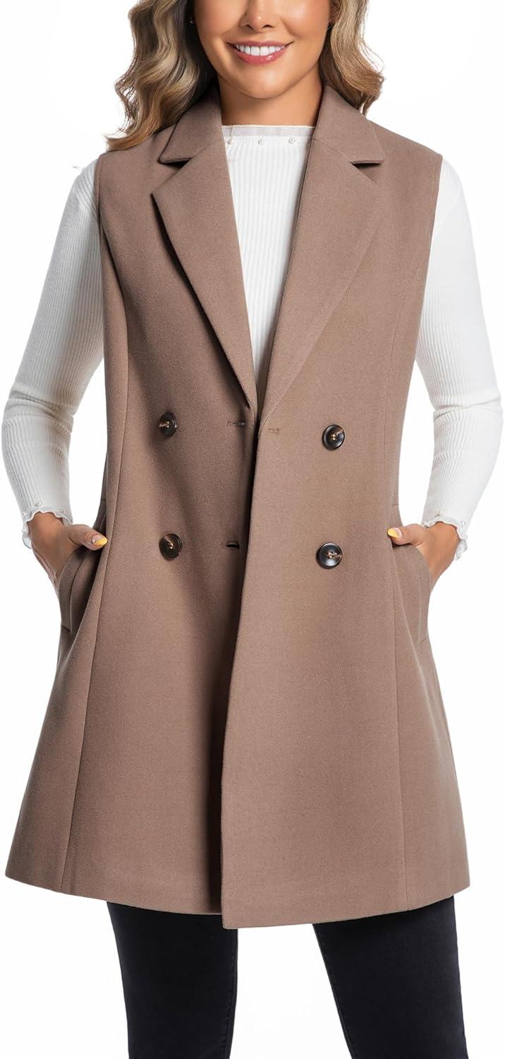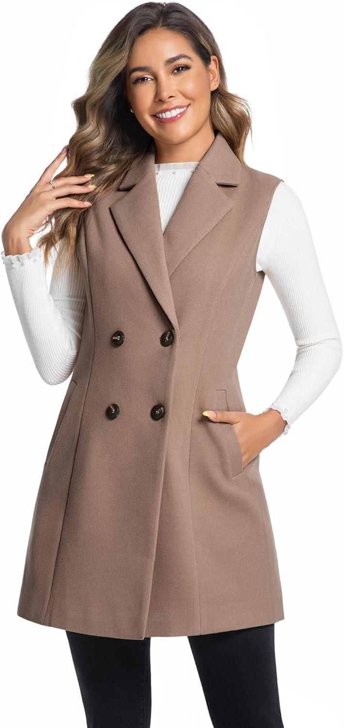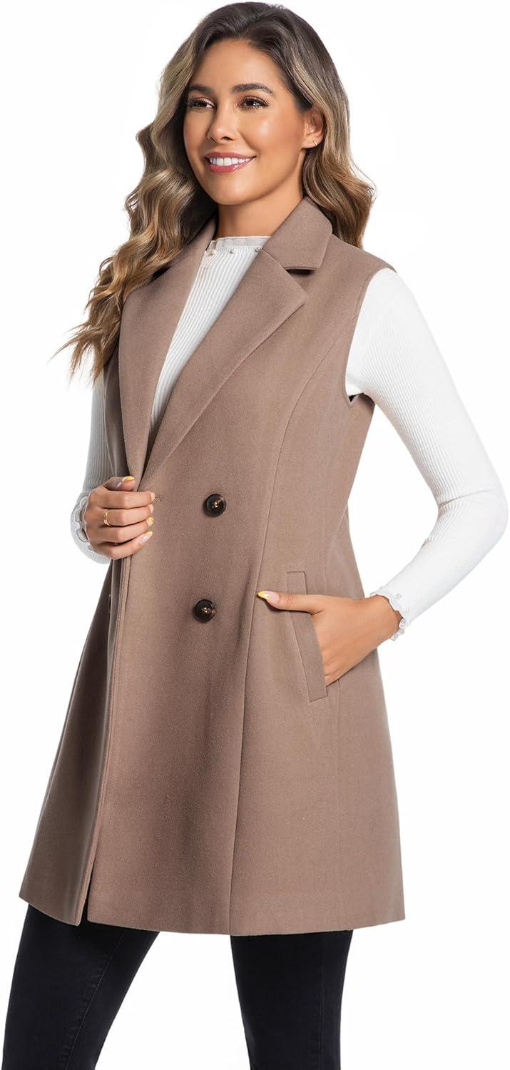 IDEALSANXUN Long Vest for Women Sleeveless Tweed Blazer Fall Jackets Cardigan Outerwear(Pure Dark Khaki)