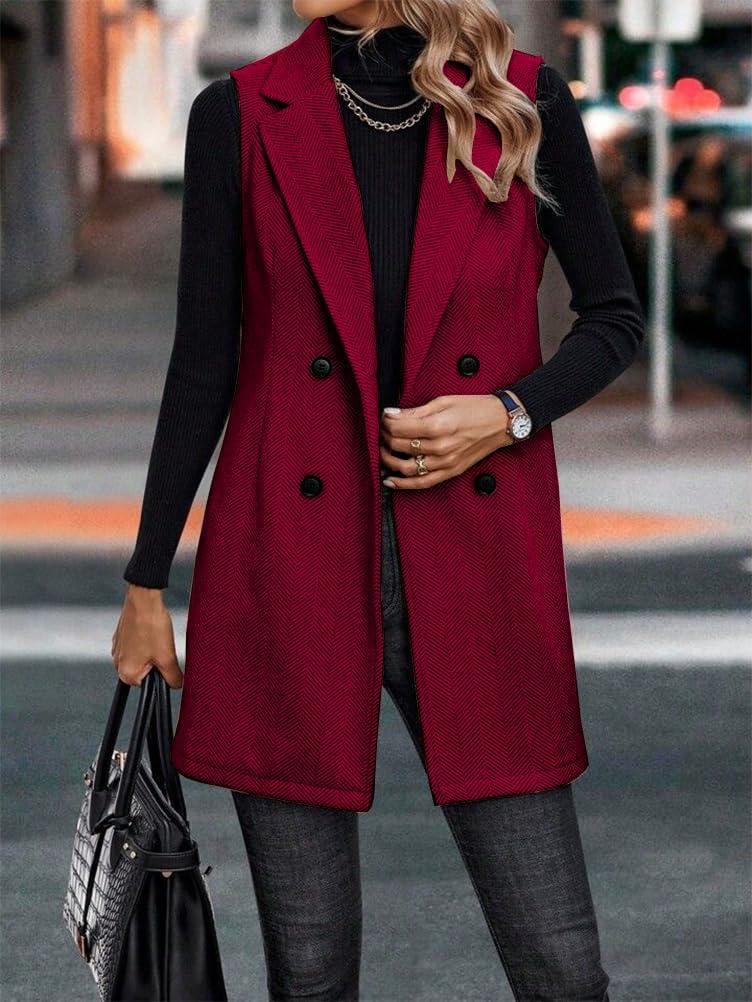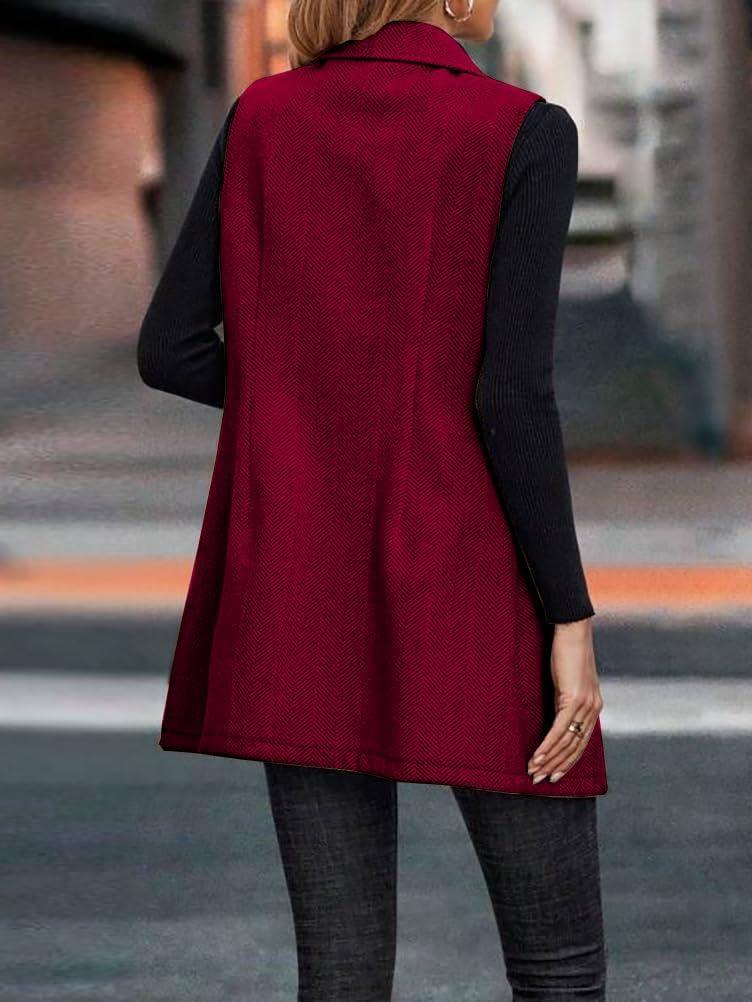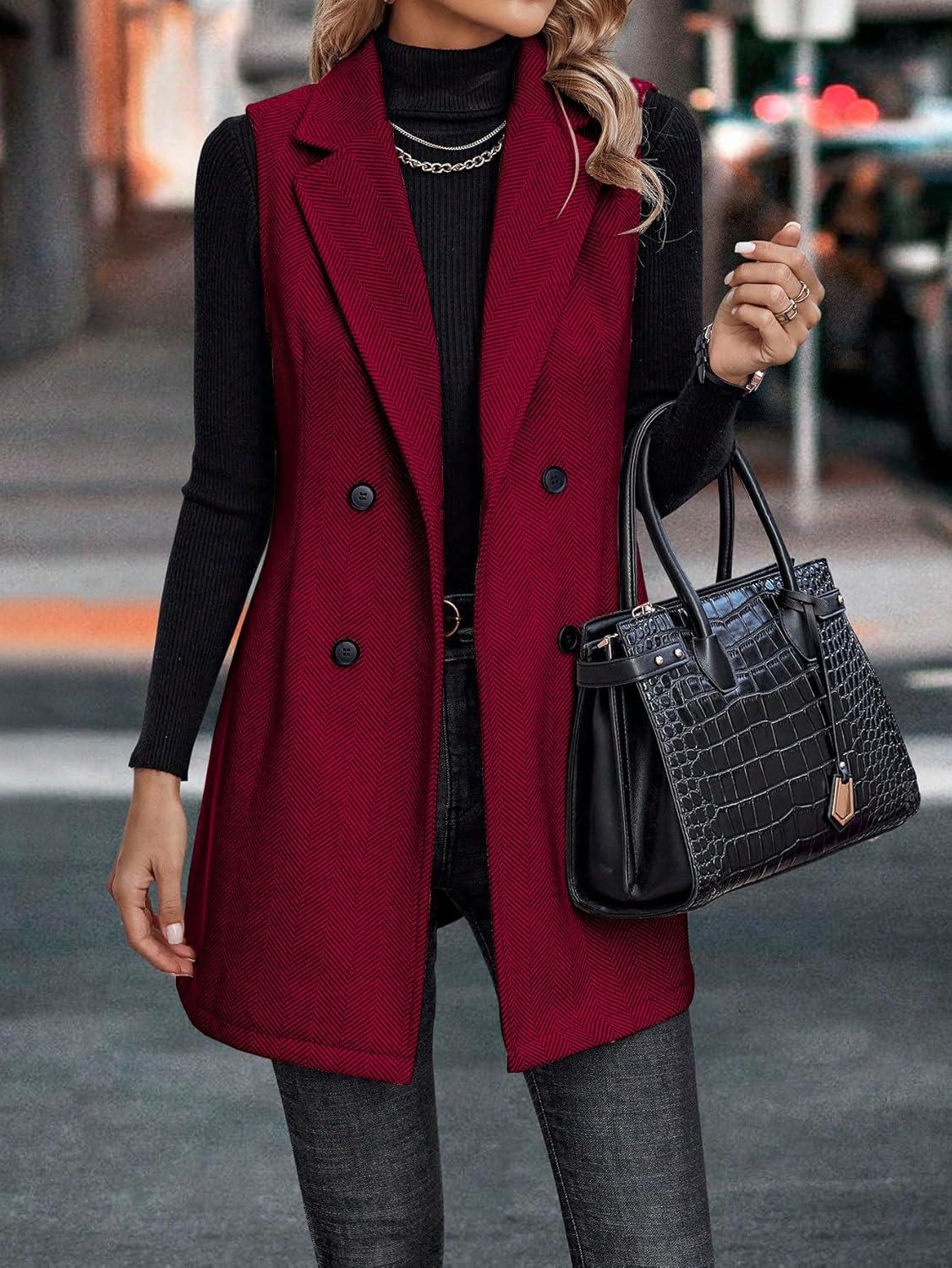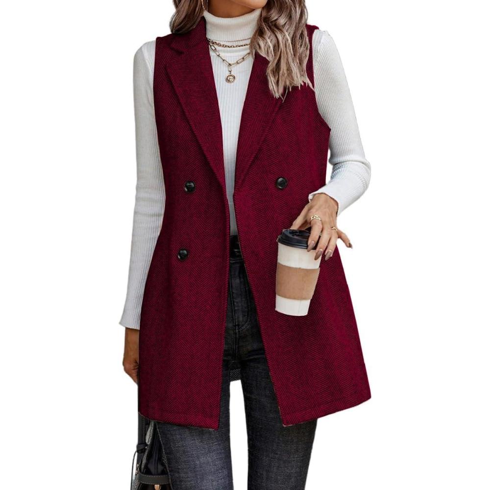 IDEALSANXUN Long Vest for Women Sleeveless Tweed Blazer Fall Jackets Cardigan Outerwear(Wine)