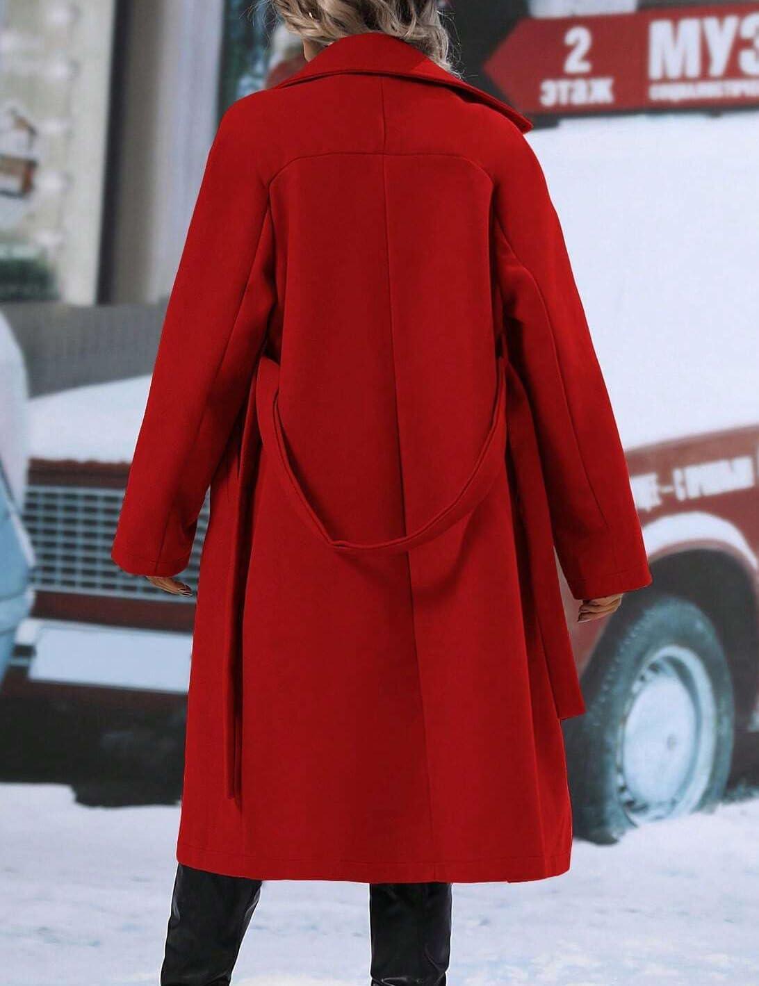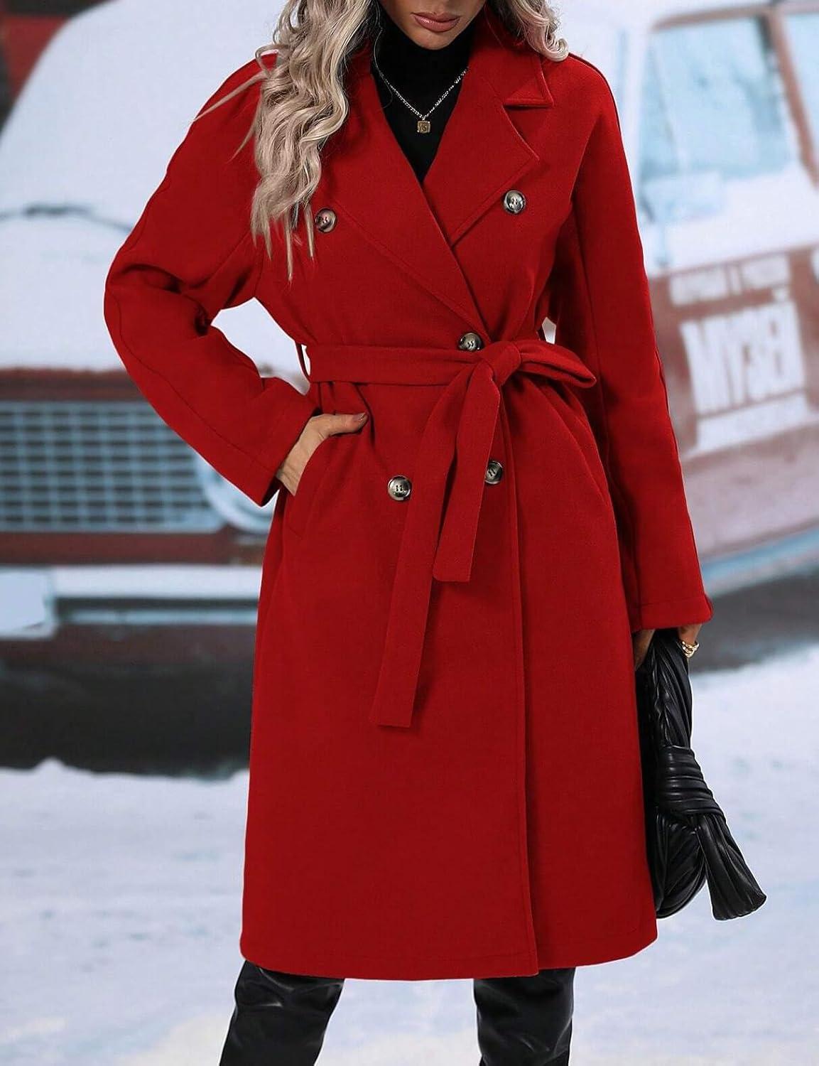 IDEALSANXUN Long Wool Coats for Women Fall Winter Blazer Jacket Lapel Trench Coat Casual Dressy Peacoat Overcoat with Belt(Red)