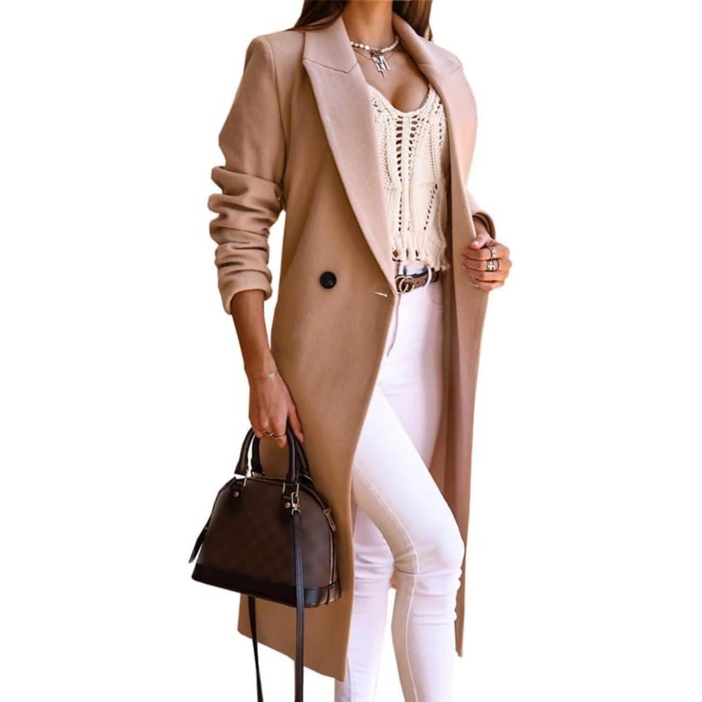 IDEALSANXUN Long Wool Coats for Women Fall Winter Trench Coat Peacoat Double Breasted Blazer Jackets Overcoat(Dark Khaki)