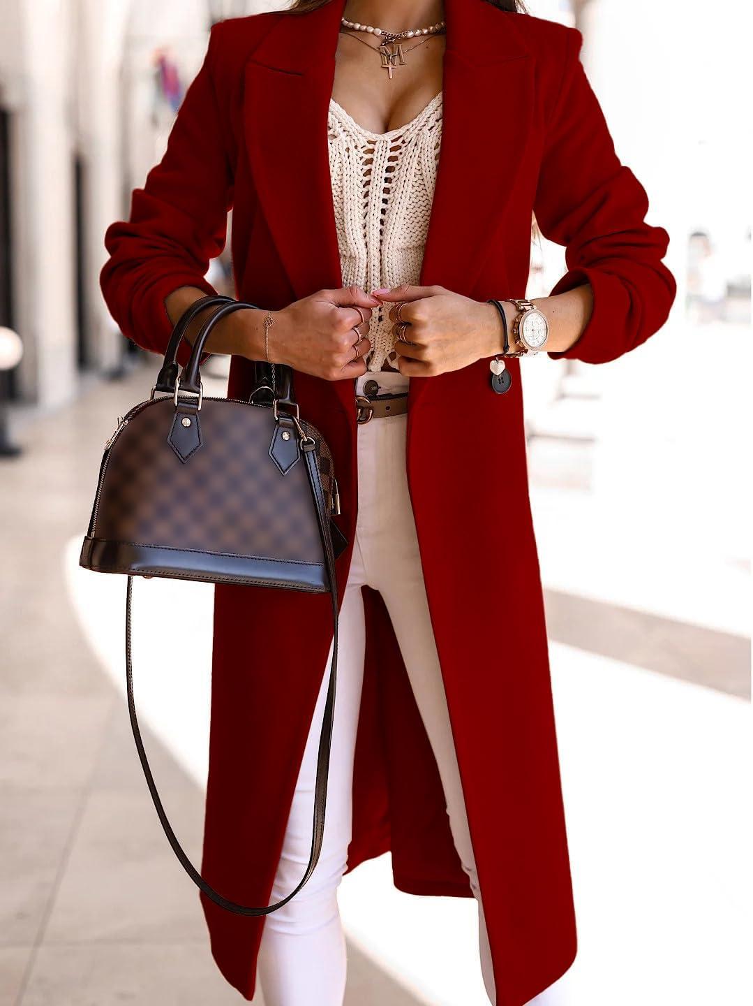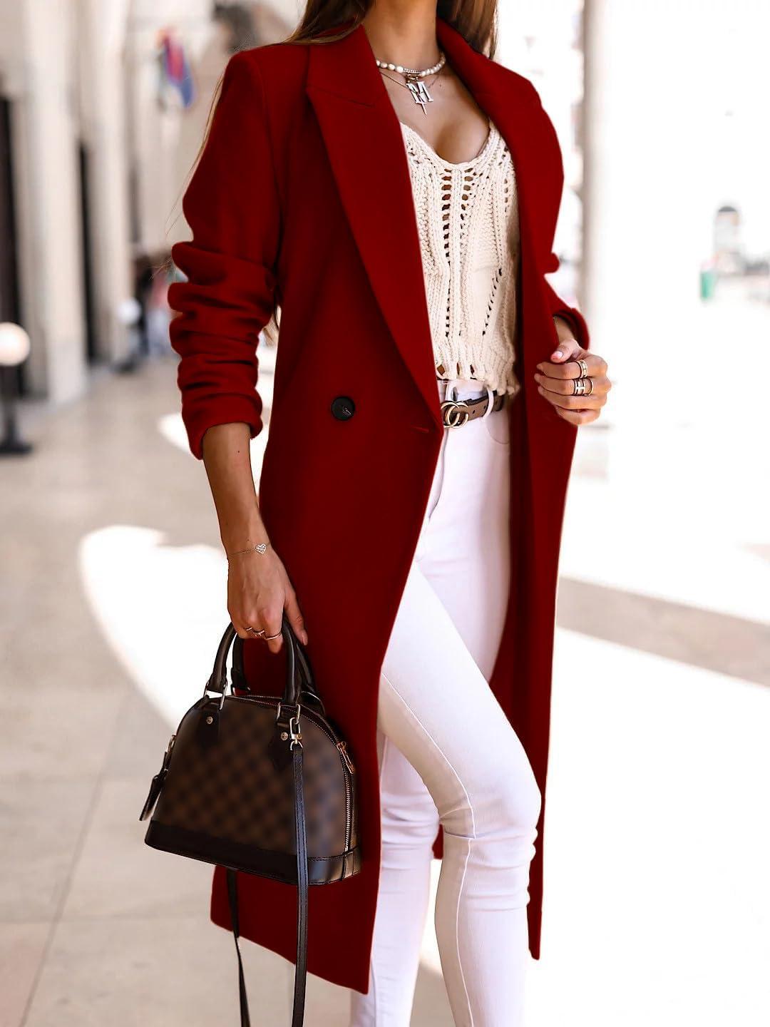 IDEALSANXUN Long Wool Coats for Women Fall Winter Trench Coat Peacoat Double Breasted Blazer Jackets Overcoat(Maple Red)