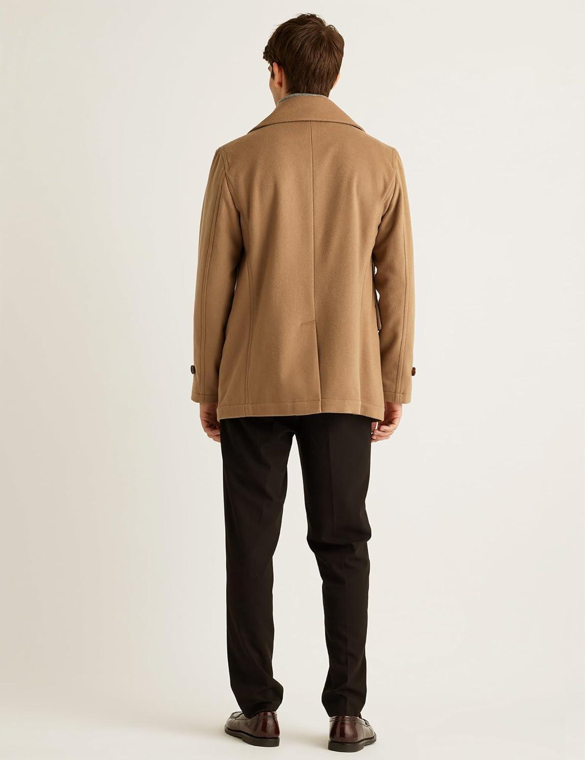 IDEALSANXUN Mens Casual Double Breasted Wool Trench Coat Peacoat Winter Jackets(Dark Camel)