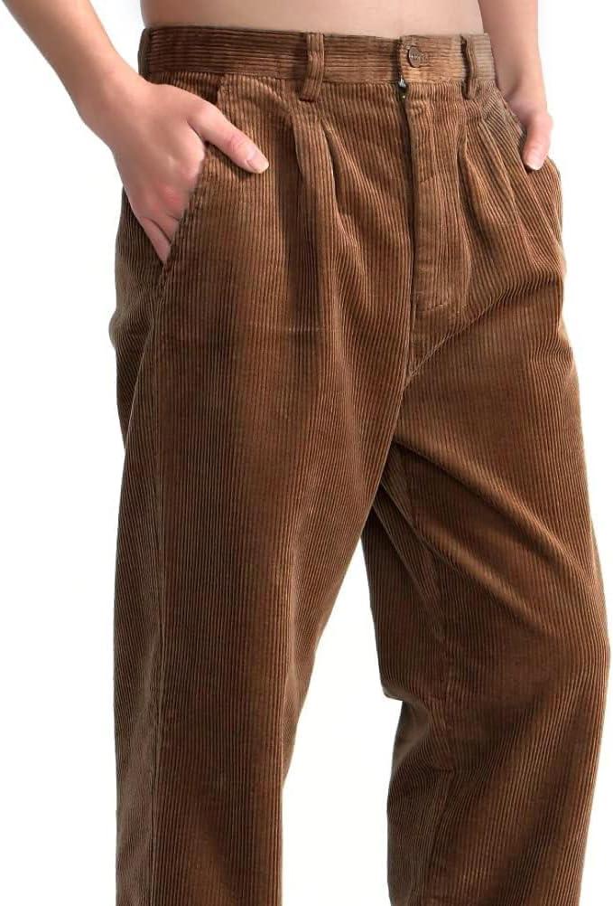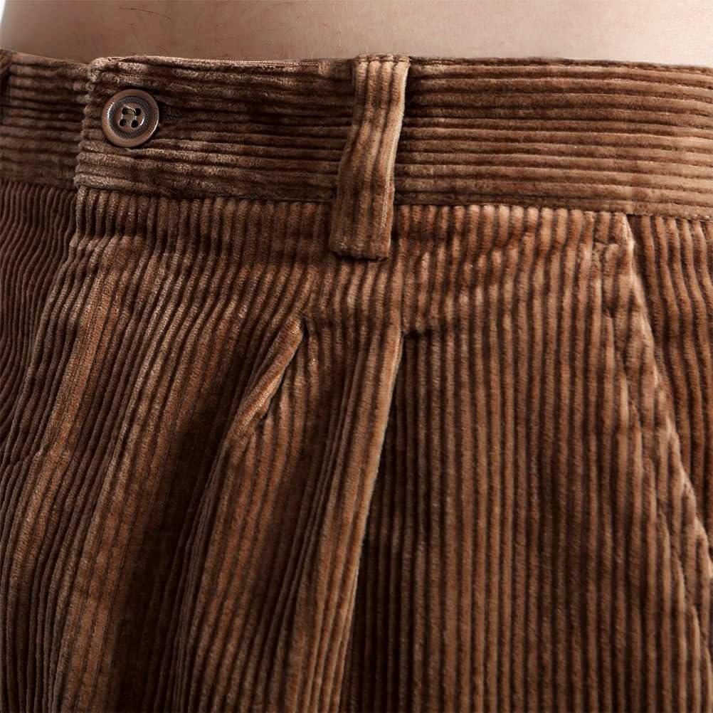IDEALSANXUN Mens Corduroy Pants Casual Straight Leg Pleated Dress Pants(1-brown New)