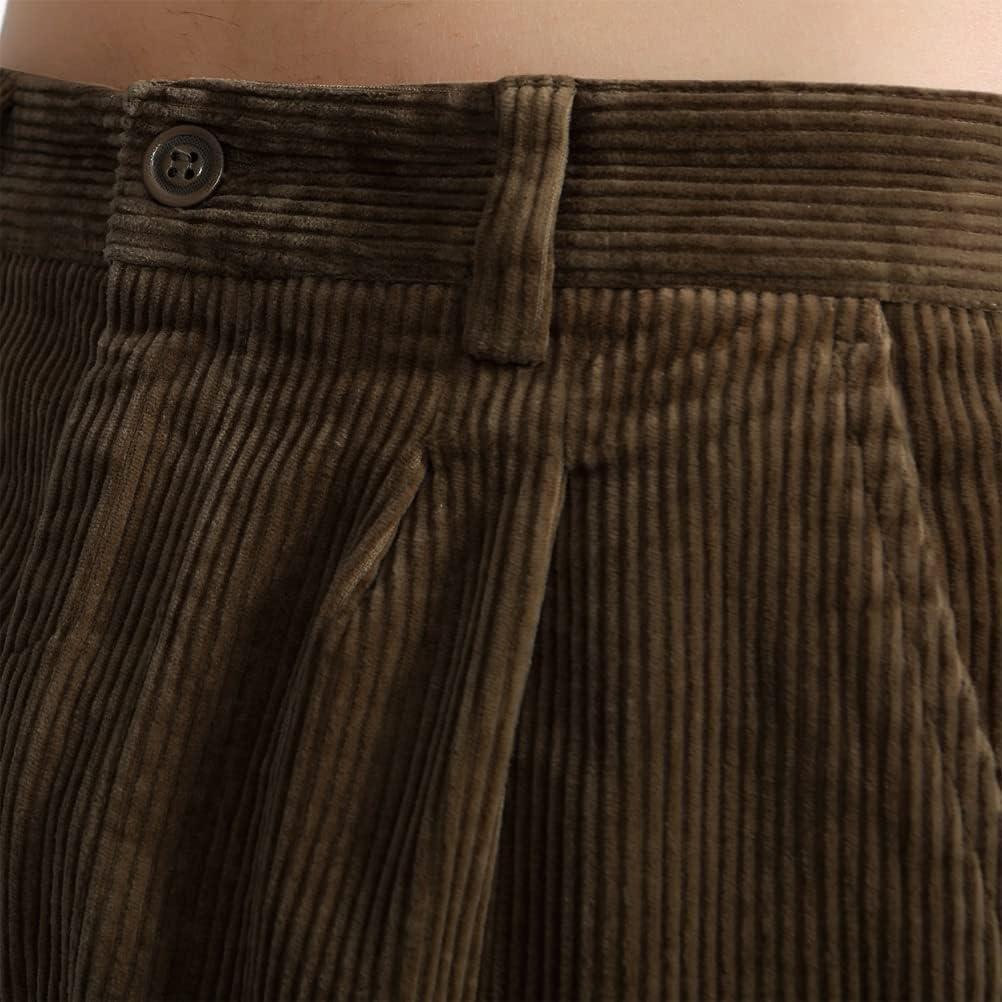 IDEALSANXUN Mens Corduroy Pants Casual Straight Leg Pleated Dress Pants(1-camel)