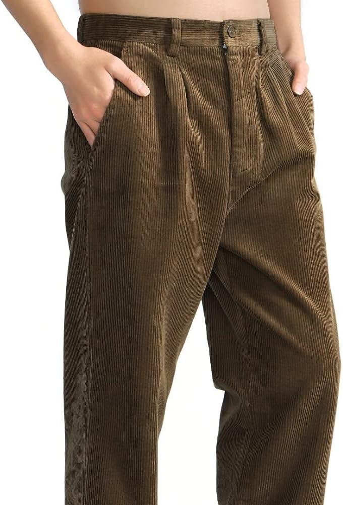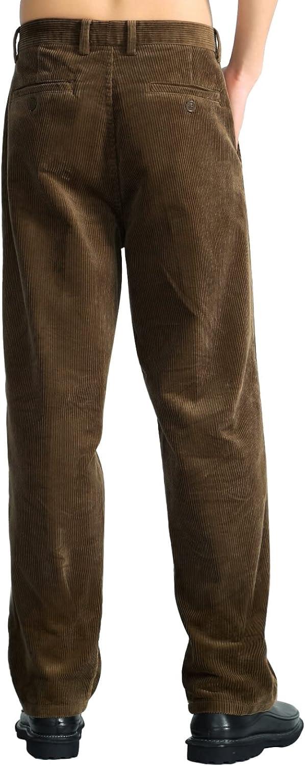 IDEALSANXUN Mens Corduroy Pants Casual Straight Leg Pleated Dress Pants(1-brown)