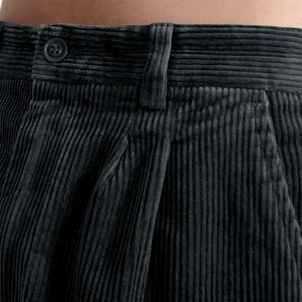 IDEALSANXUN Mens Corduroy Pants Casual Straight Leg Pleated Dress Pants(1-dark Grey)