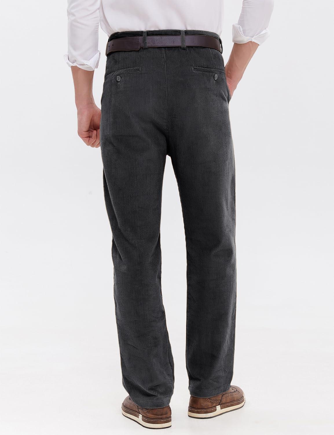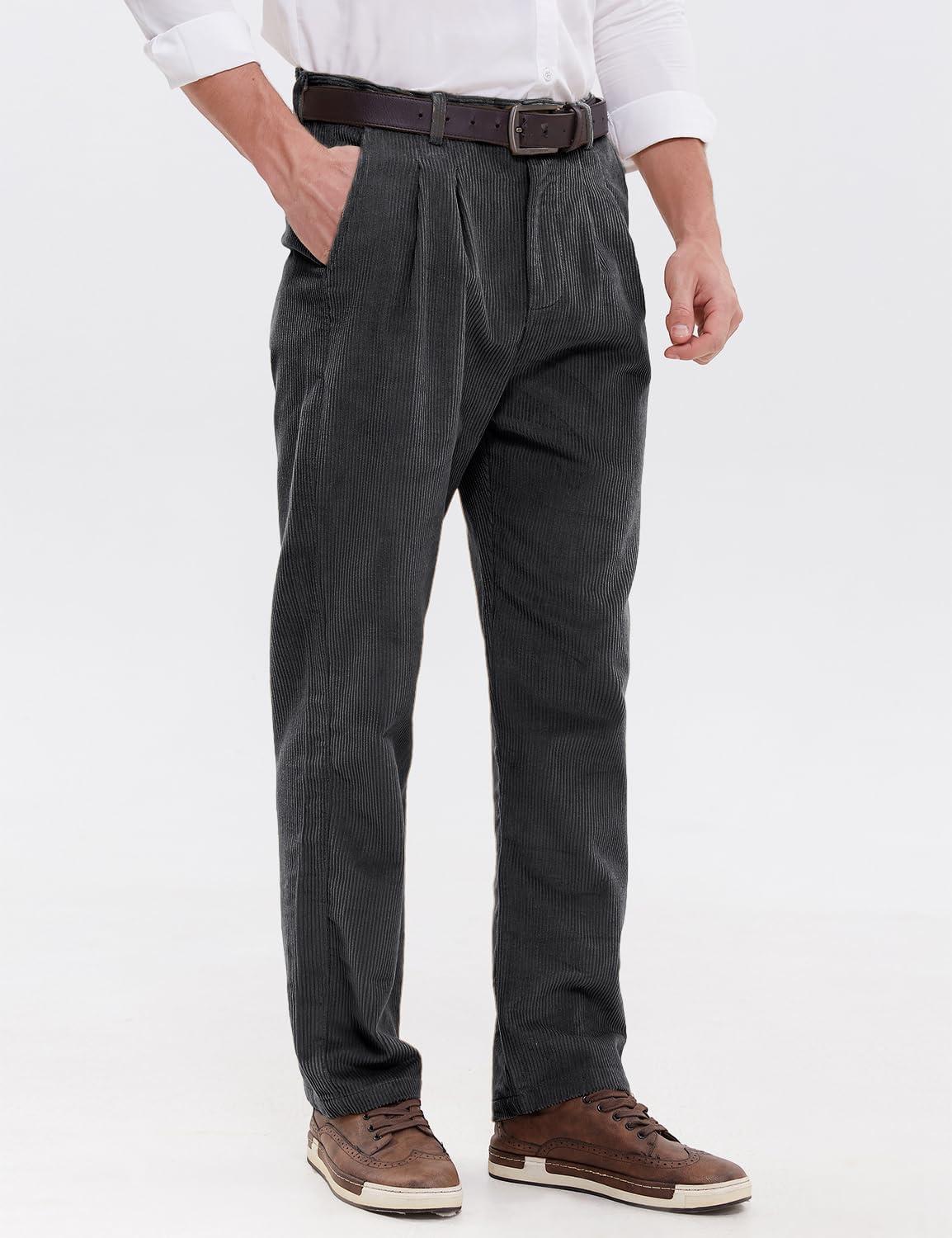 IDEALSANXUN Mens Corduroy Pants Pleated Casual Straight Leg Fall Winter Dress Pant Trouser(Dark Grey)