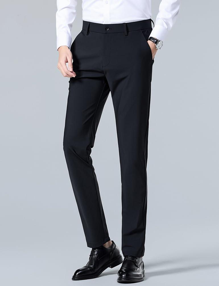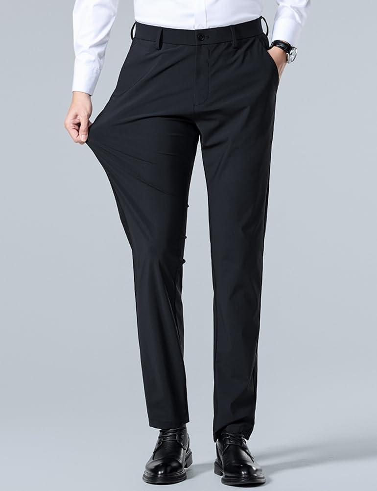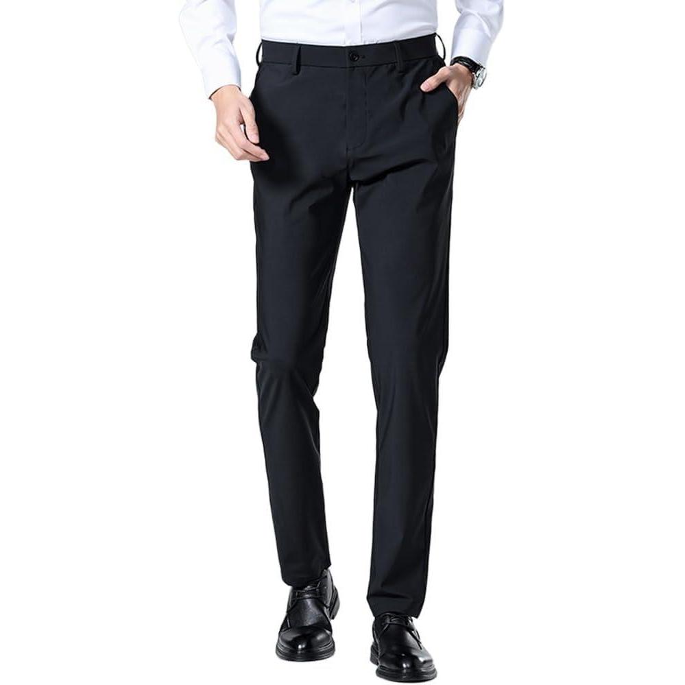 IDEALSANXUN Mens Dress Pants Summer Casual Relaxed Fit Elastic Waist Slacks Straight Leg Suit Pants(Black)