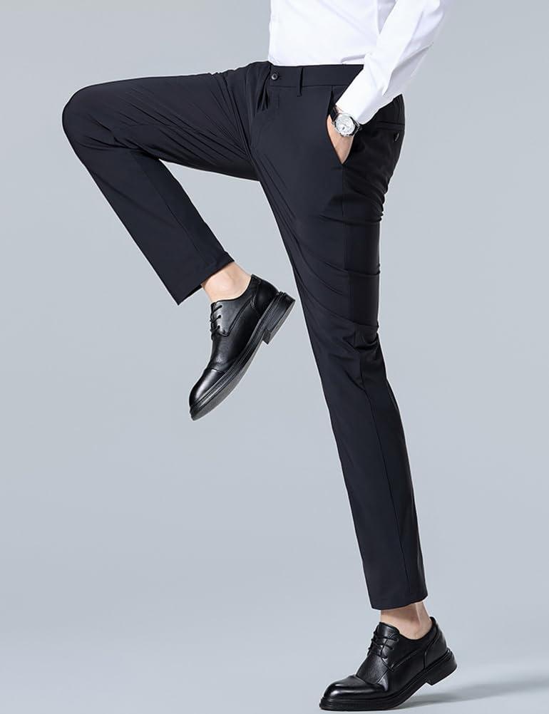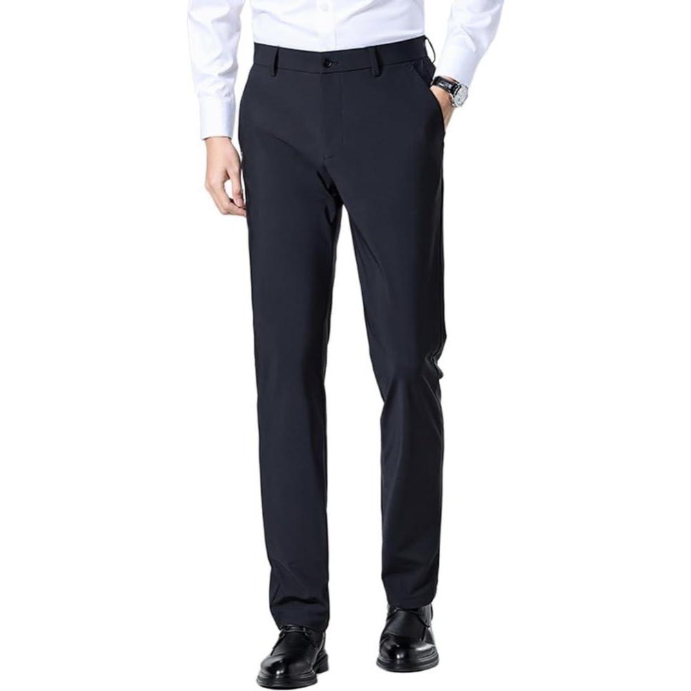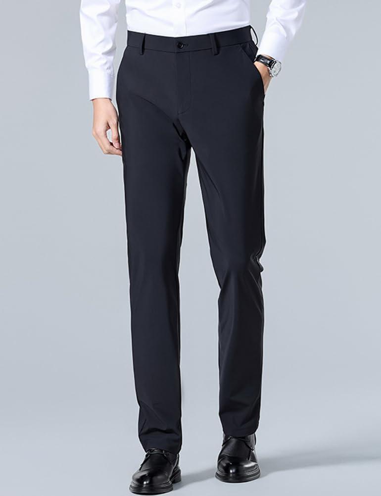IDEALSANXUN Mens Dress Pants Summer Casual Relaxed Fit Elastic Waist Slacks Straight Leg Suit Pants(Navy)