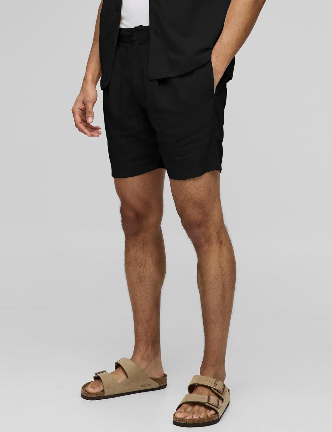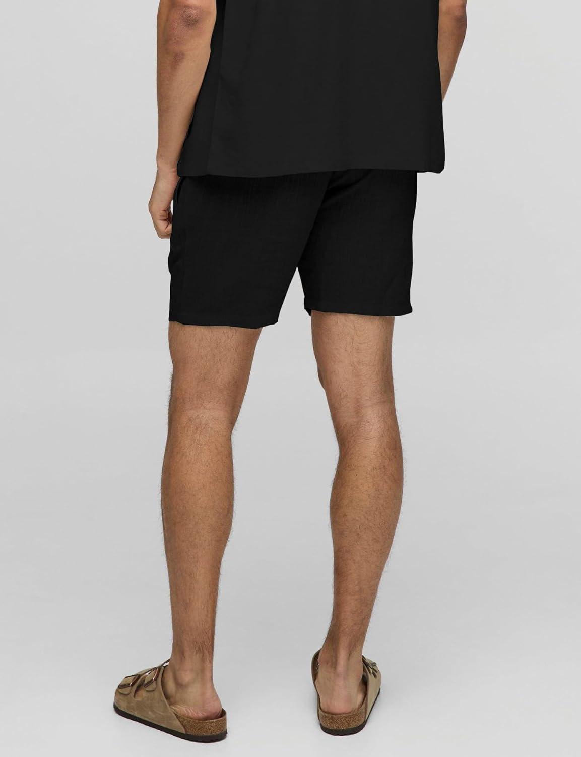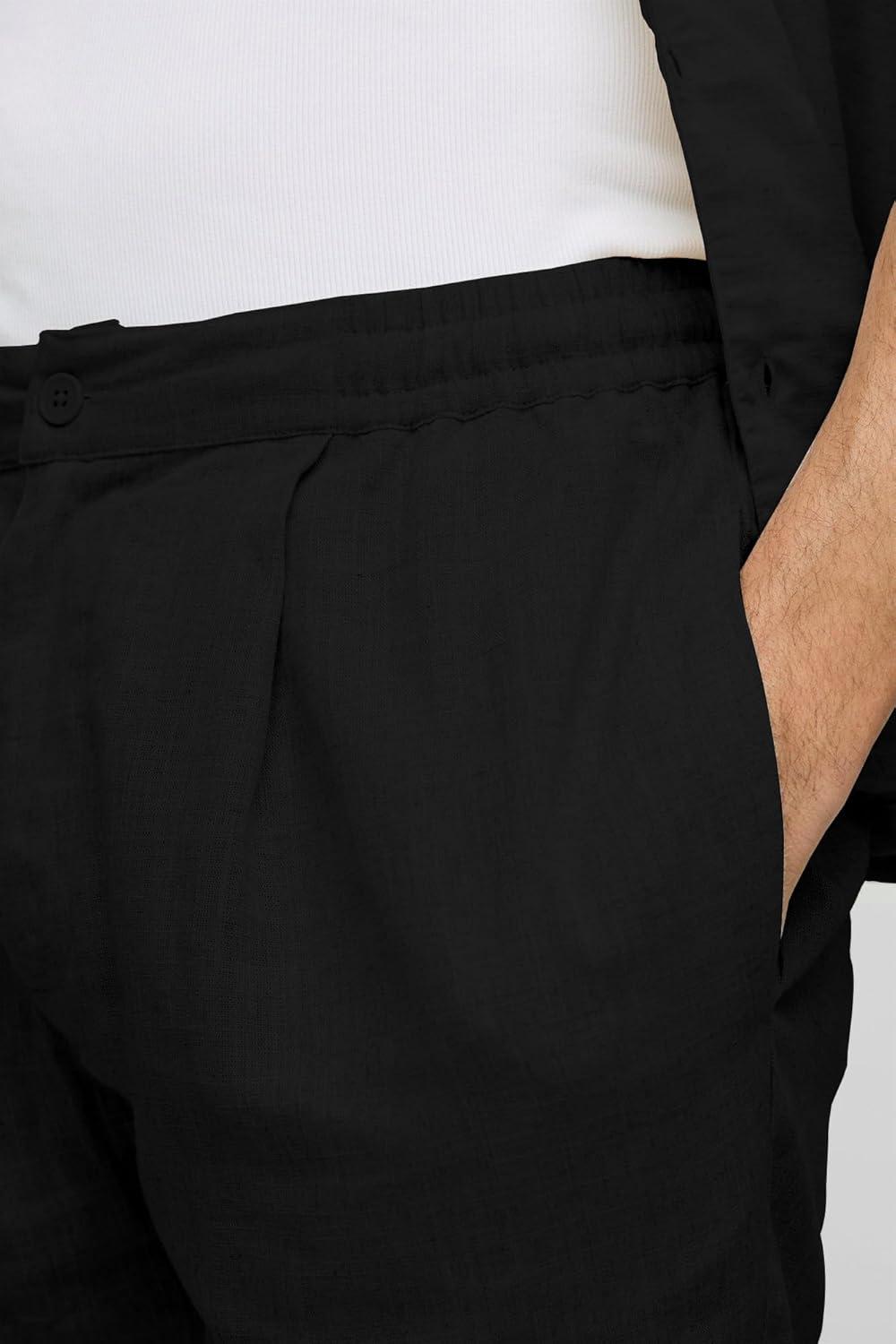 IDEALSANXUN Mens Pleated Front Linen Shorts Summer Casual Slim Fit Dress Shorts(Black)