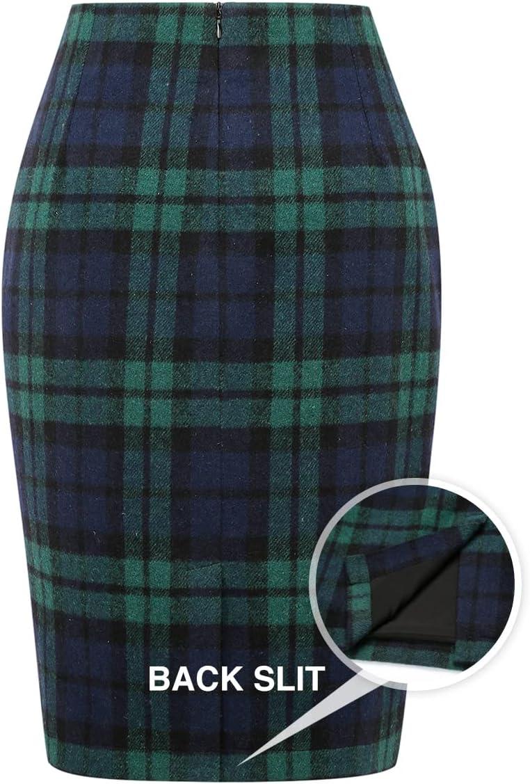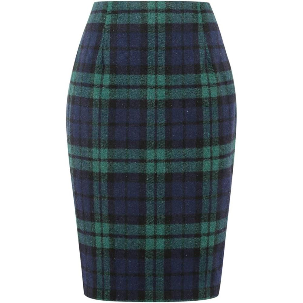 Save up to 40% on IDEALSANXUN Midi Plaid Skirts for Women Fall Winter Knee Length Pencil Wool Skirt with Slit(Green) styles during our end-of-season sale.