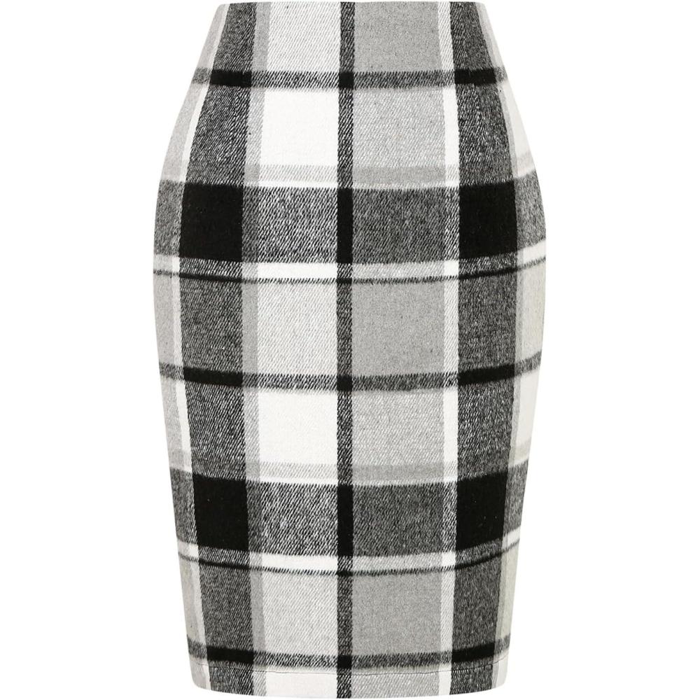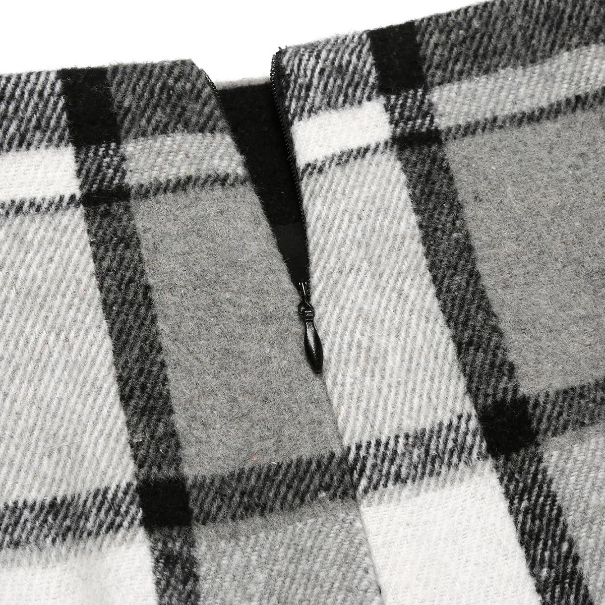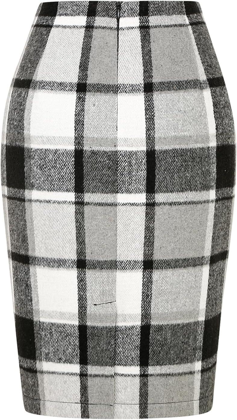 IDEALSANXUN Midi Plaid Skirts for Women Fall Winter Knee Length Pencil Wool Skirt with Slit(Grey New)