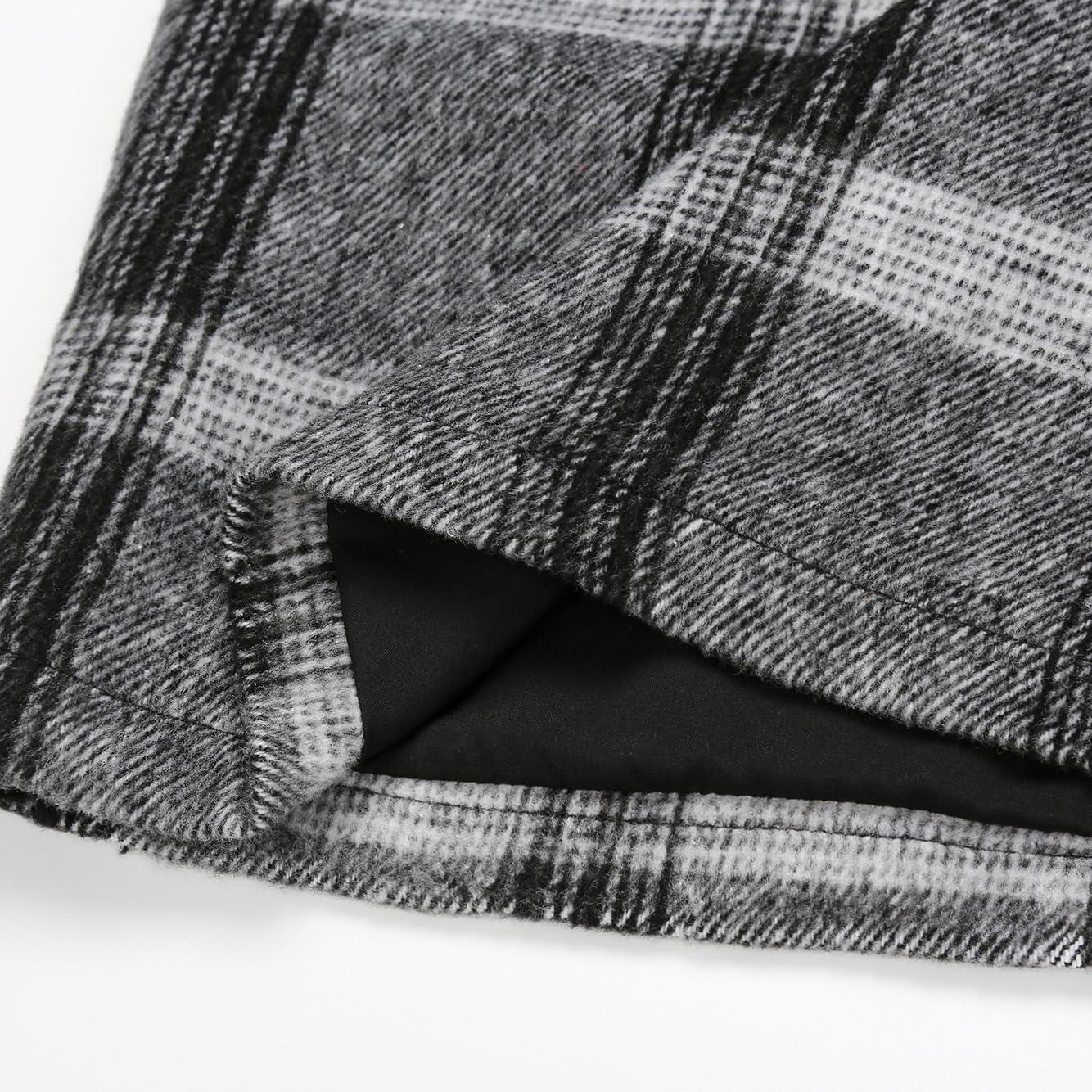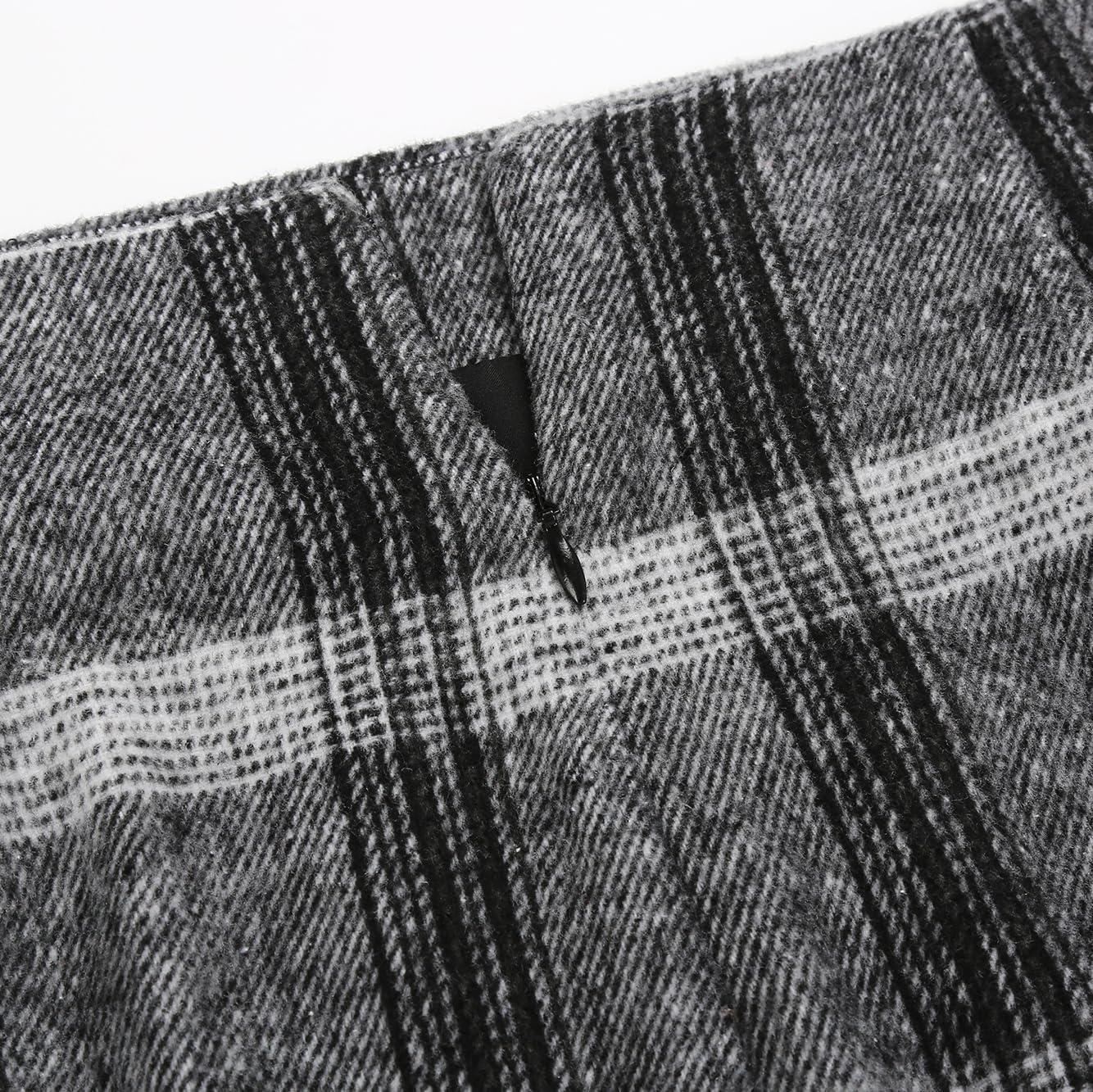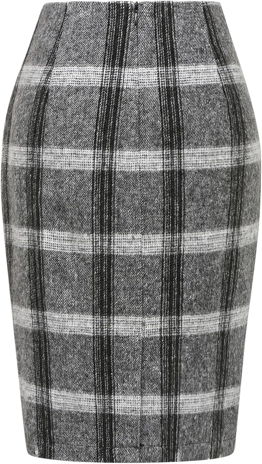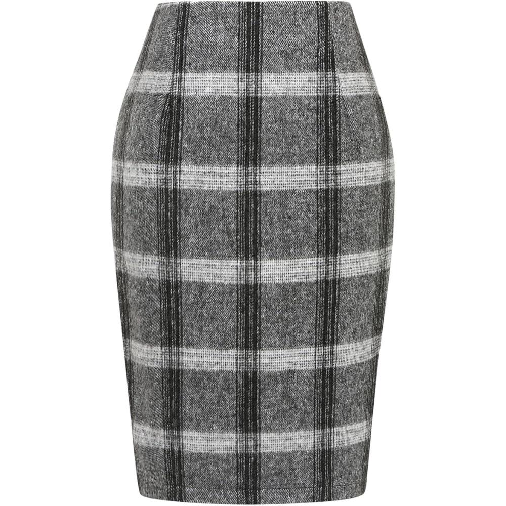 IDEALSANXUN Midi Plaid Skirts for Women Fall Winter Knee Length Pencil Wool Skirt with Slit(Grey)