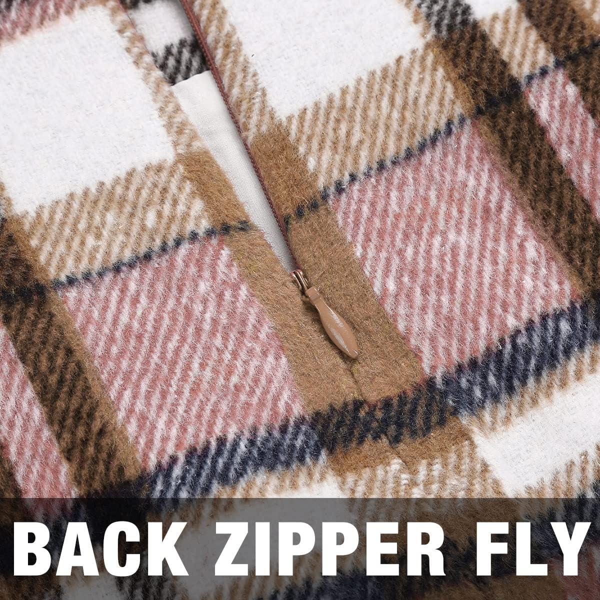 IDEALSANXUN Midi Plaid Skirts for Women Fall Winter Knee Length Pencil Wool Skirt with Slit(Pink)