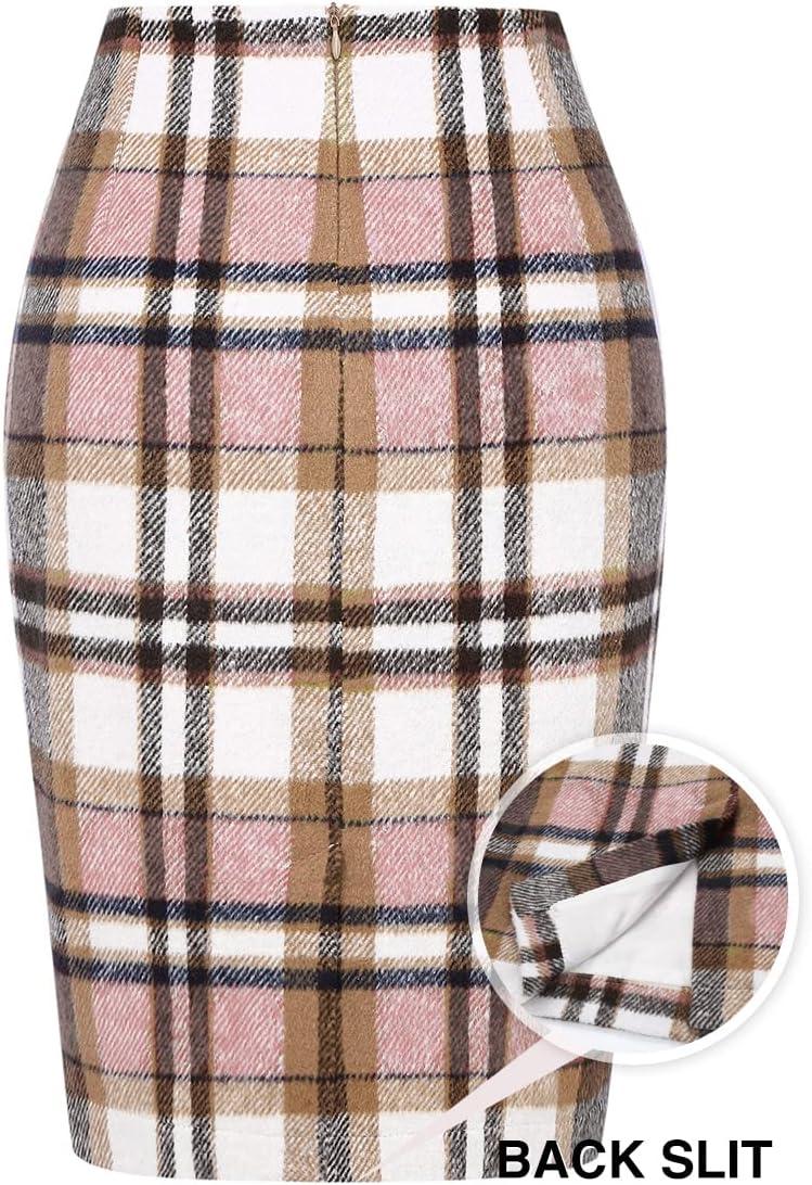 Save big on IDEALSANXUN Midi Plaid Skirts for Women Fall Winter Knee Length Pencil Wool Skirt with Slit(Pink) during our summer blowout sale. Limited quantities available.