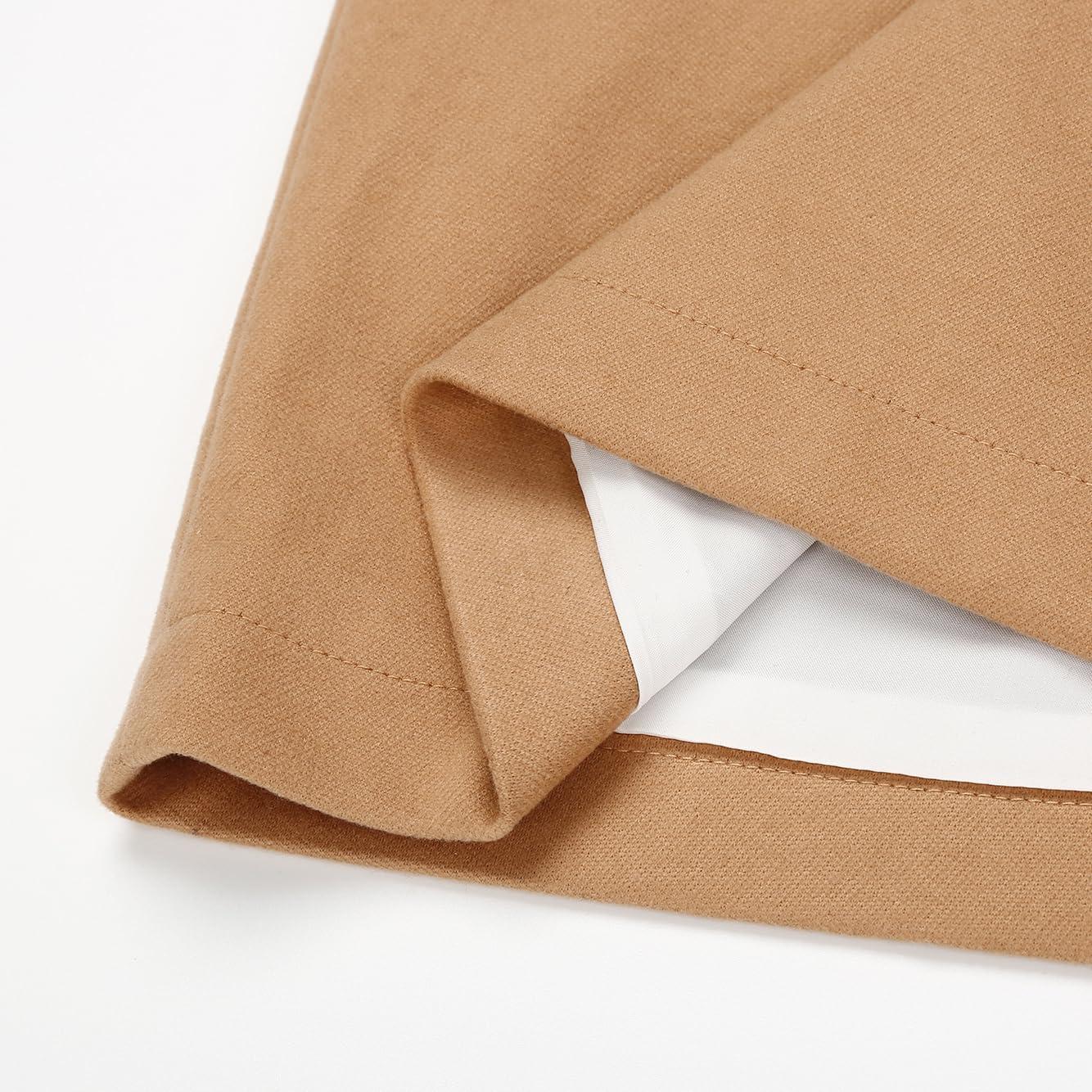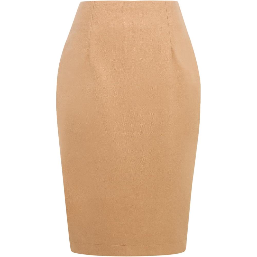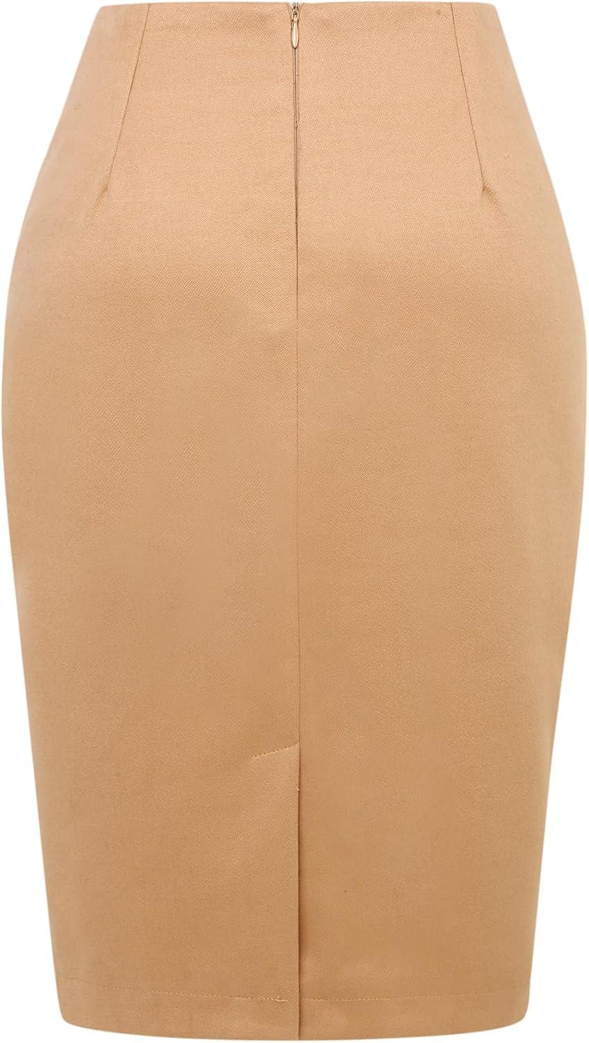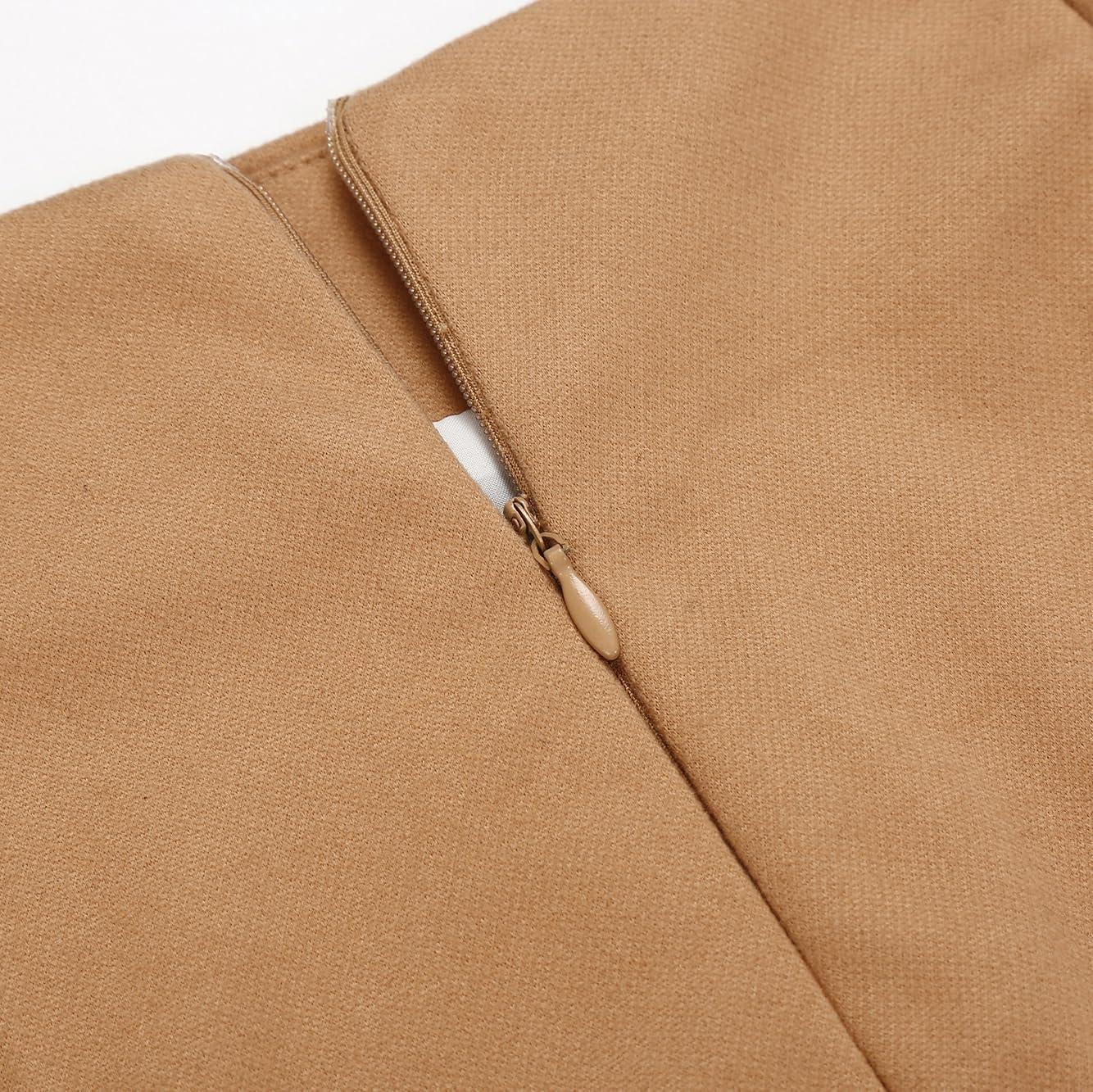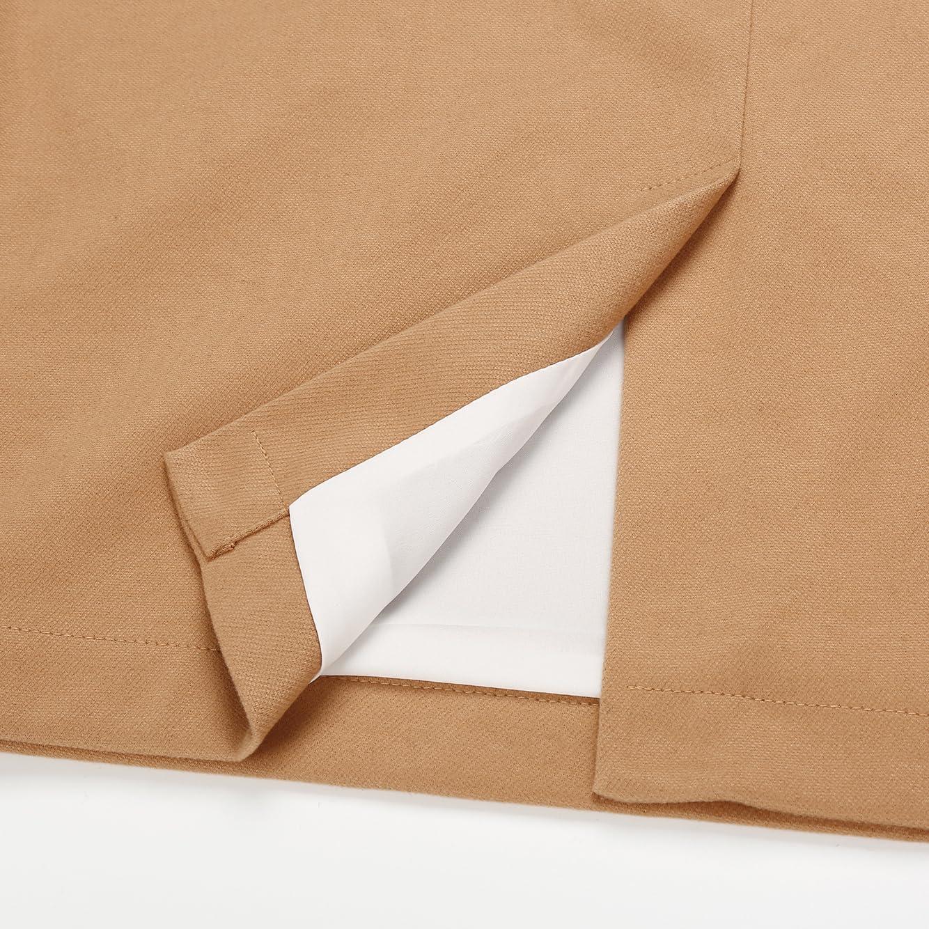IDEALSANXUN Midi Plaid Skirts for Women Fall Winter Knee Length Pencil Wool Skirt with Slit(Pure Khaki)