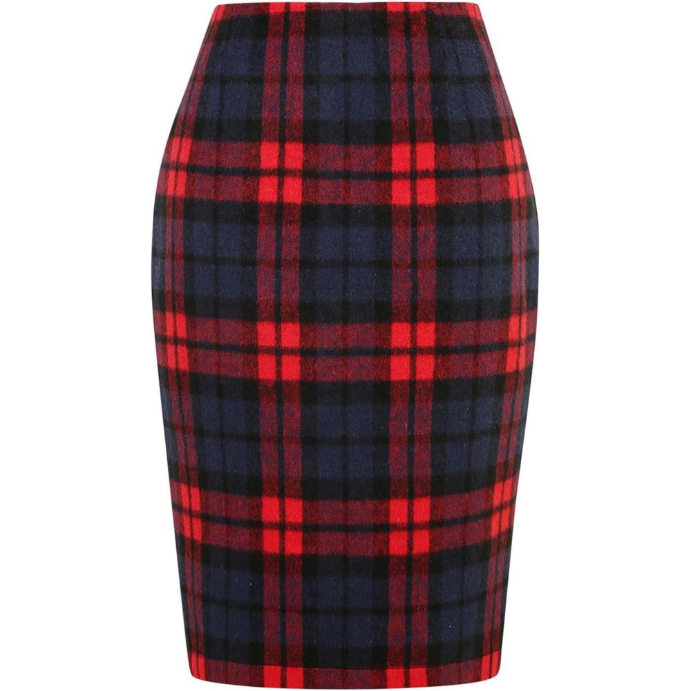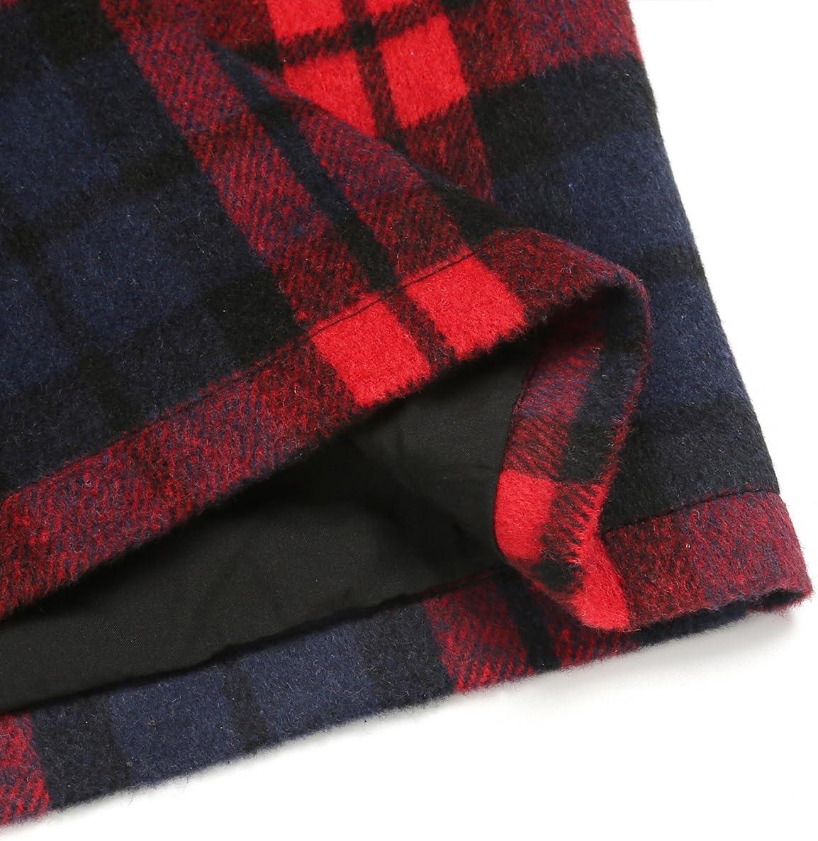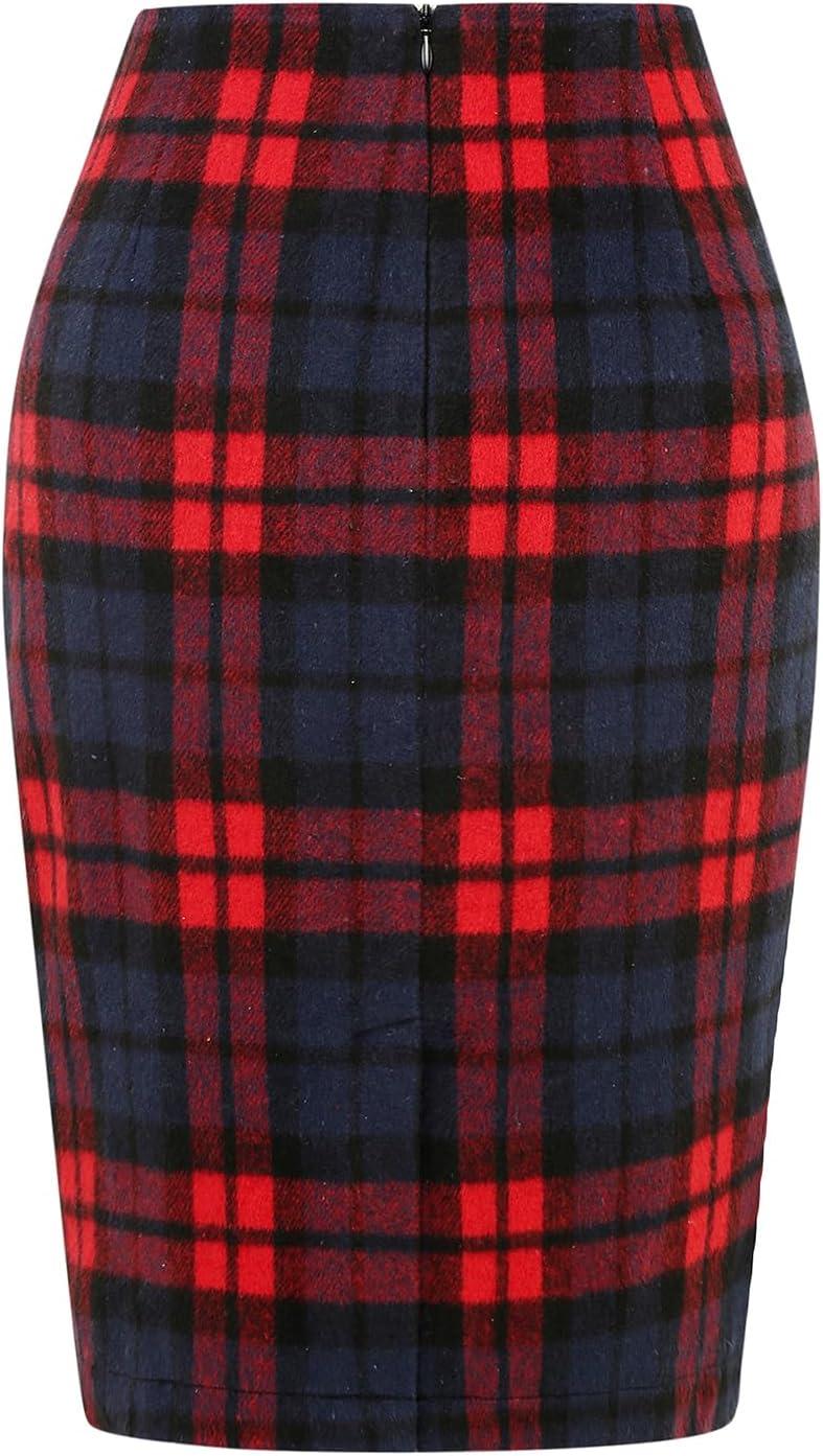 IDEALSANXUN Midi Plaid Skirts for Women Fall Winter Knee Length Pencil Wool Skirt with Slit(Red)
