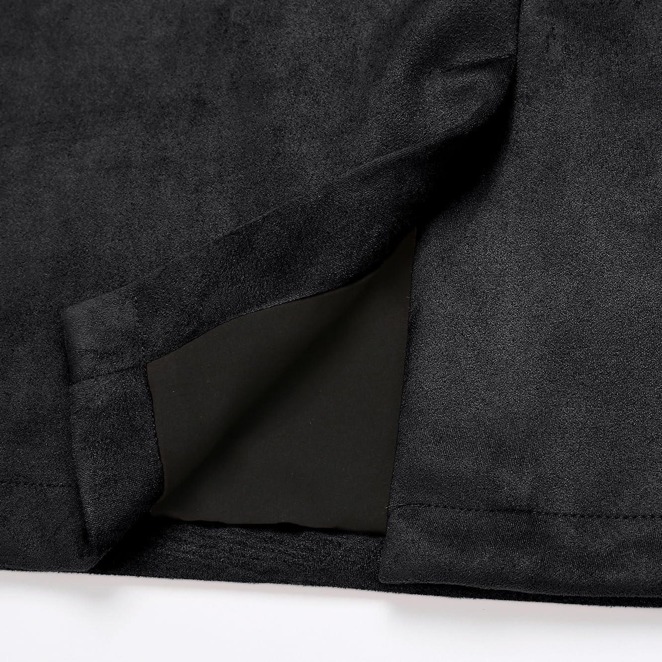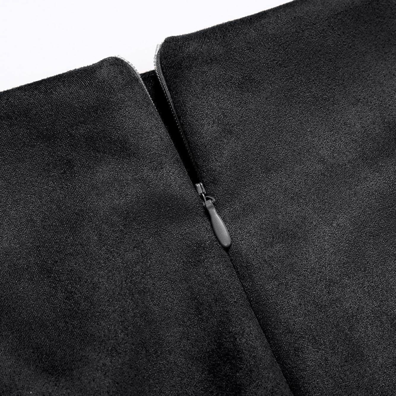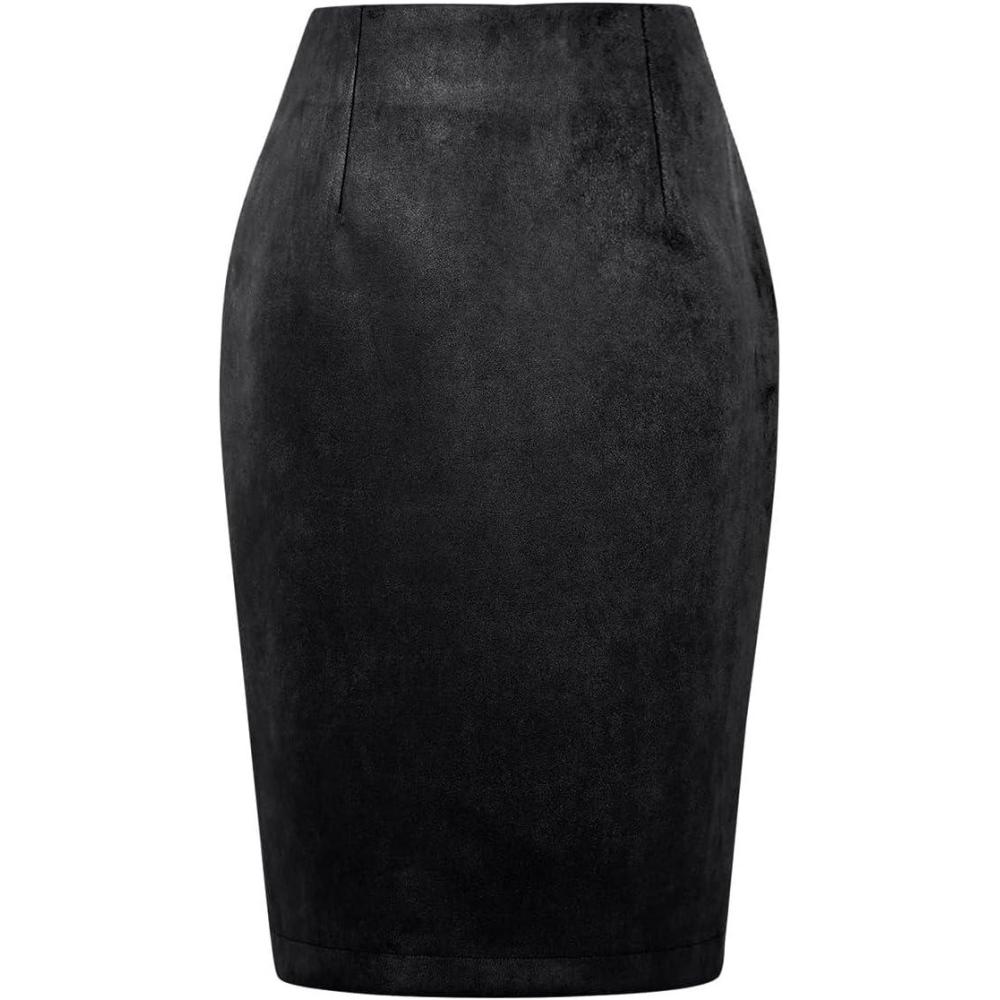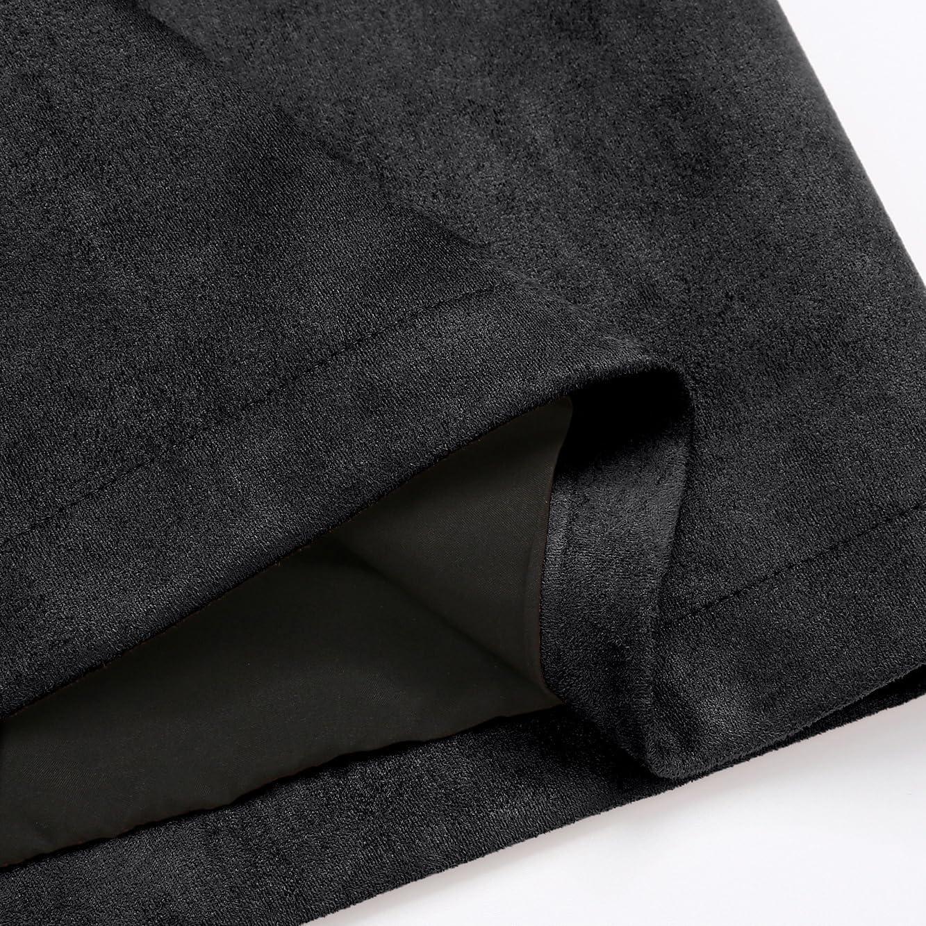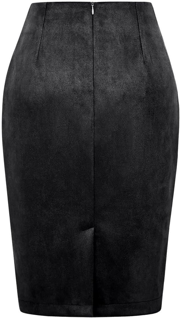 IDEALSANXUN Midi Plaid Skirts for Women Fall Winter Knee Length Pencil Wool Skirt with Slit(Suede Black)