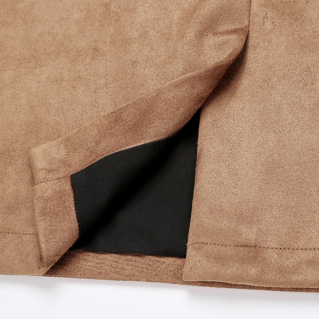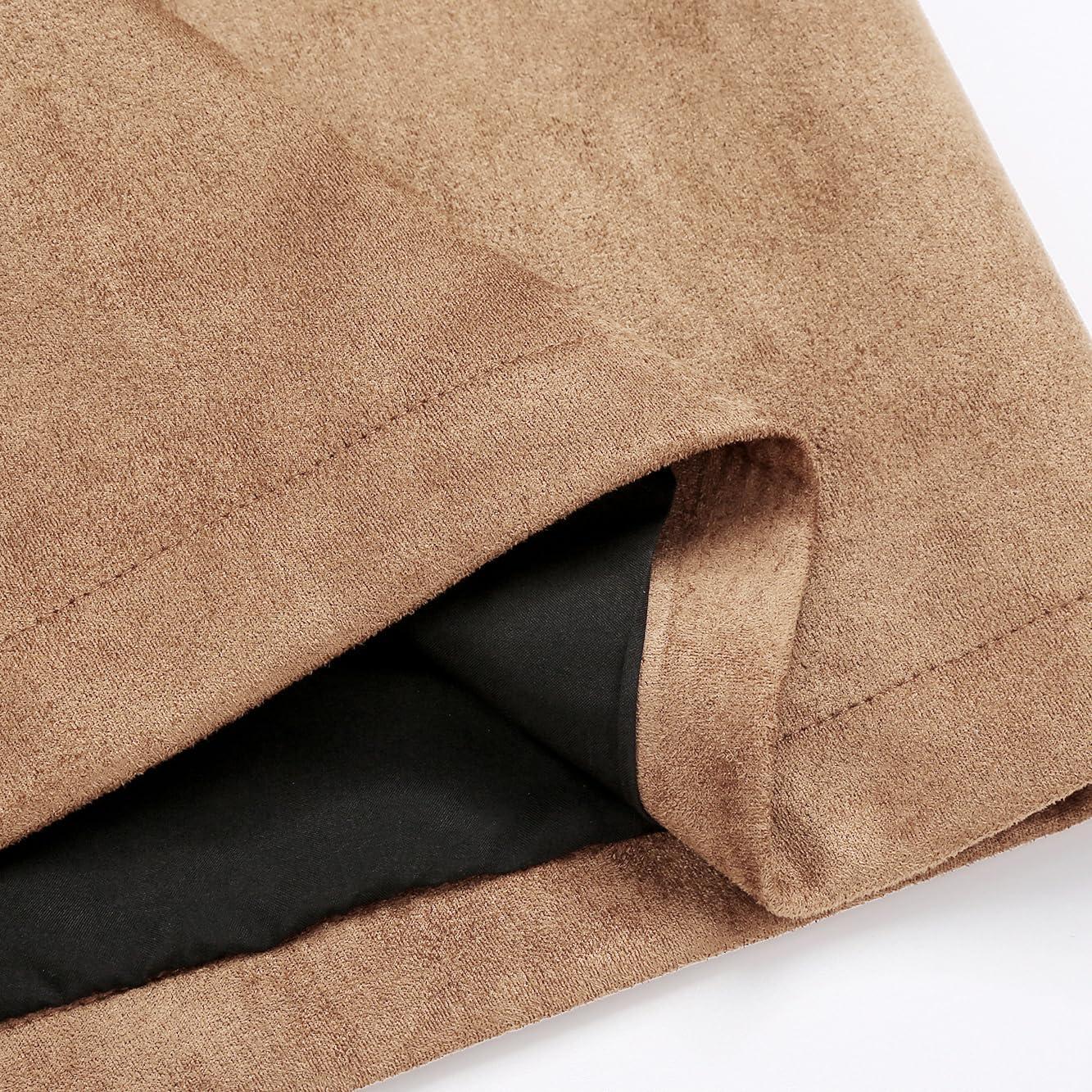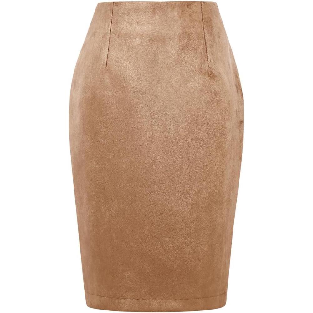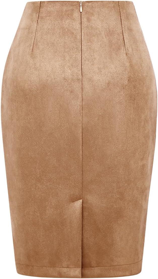 IDEALSANXUN Midi Plaid Skirts for Women Fall Winter Knee Length Pencil Wool Skirt with Slit(Suede Khaki)