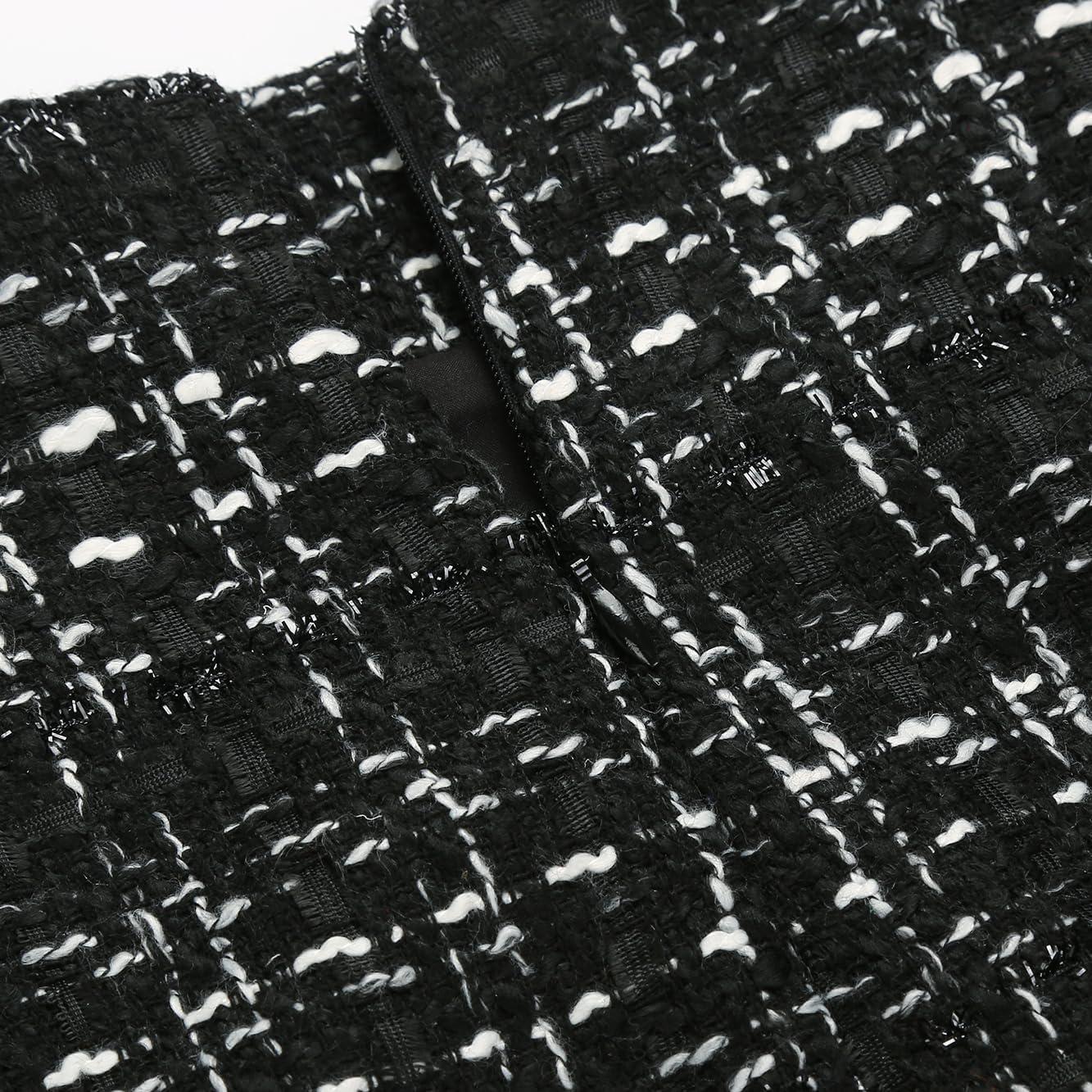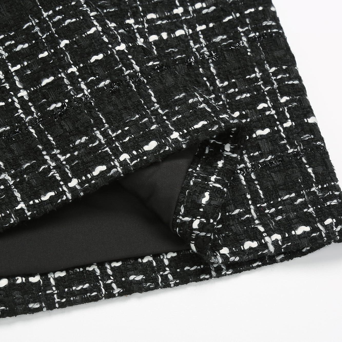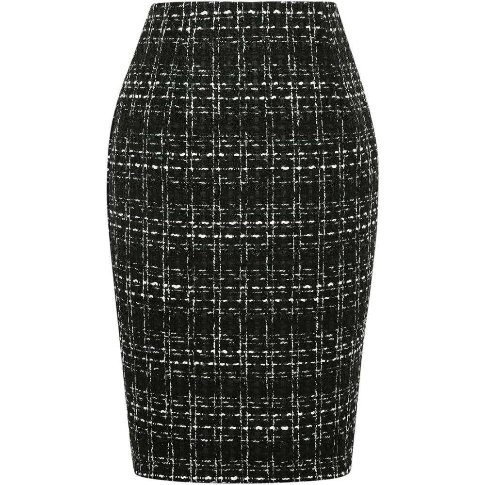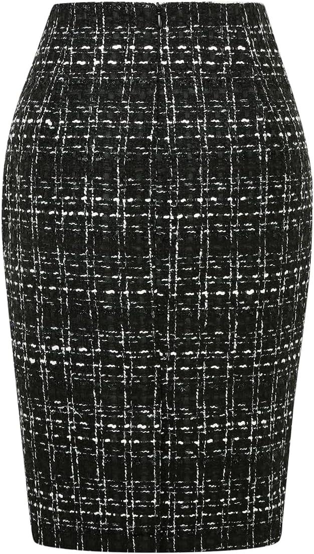 IDEALSANXUN Midi Plaid Skirts for Women Fall Winter Knee Length Pencil Wool Skirt with Slit(Tweed Black)