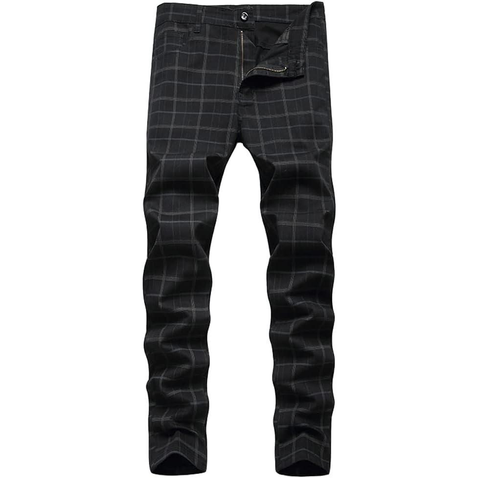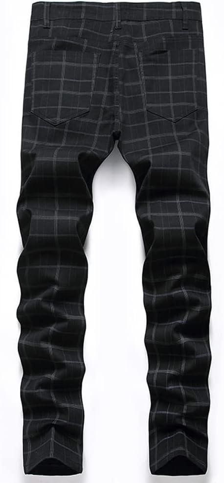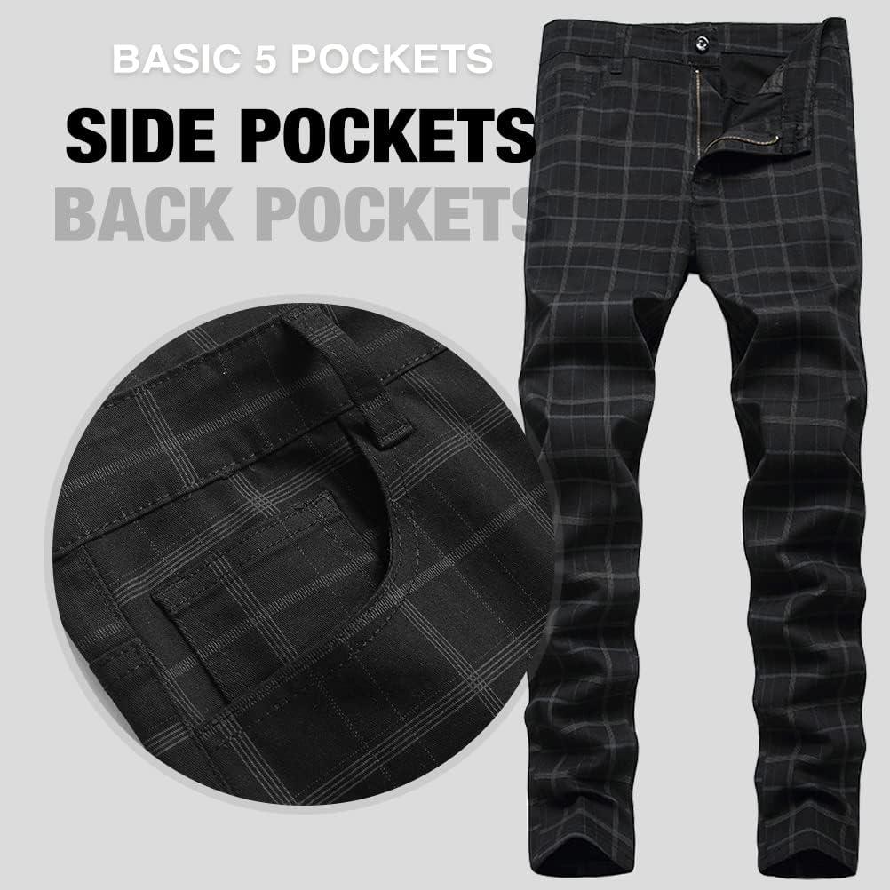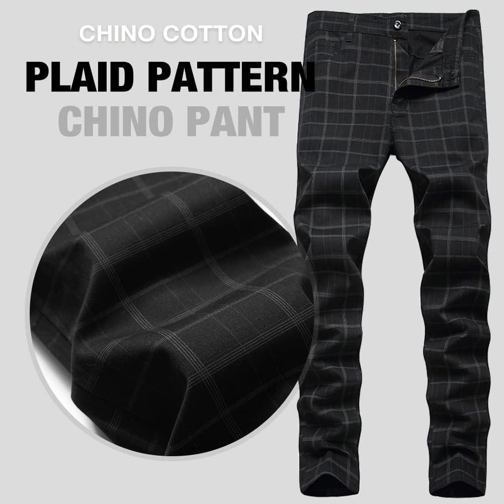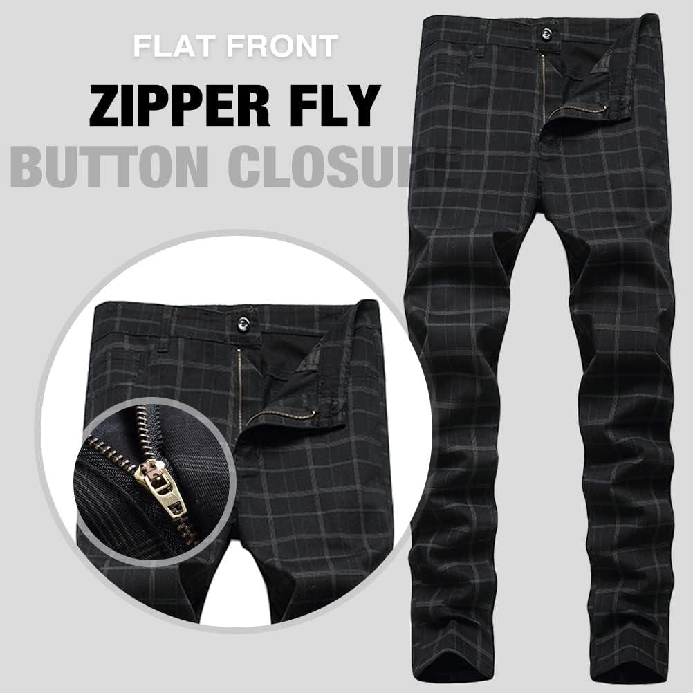 IDEALSANXUN Plaid Pants for Men Dress Chino Stright Leg Casual Skinny Pants(#2 Black)