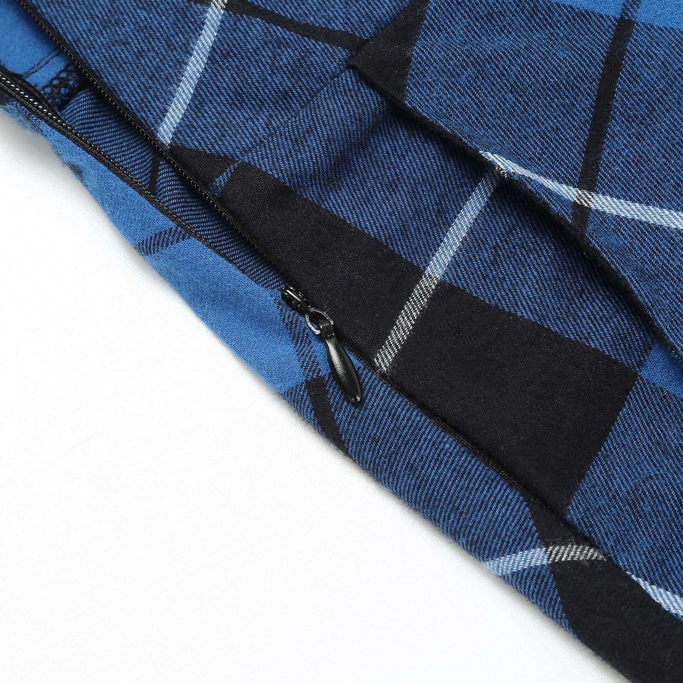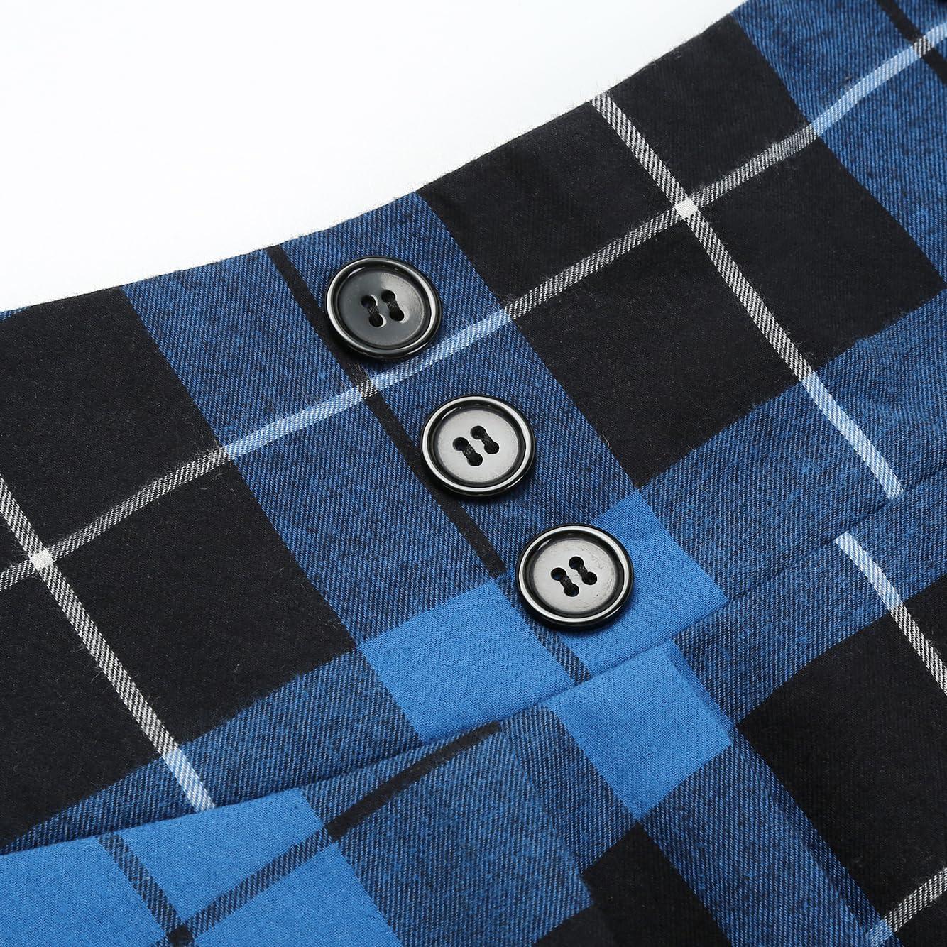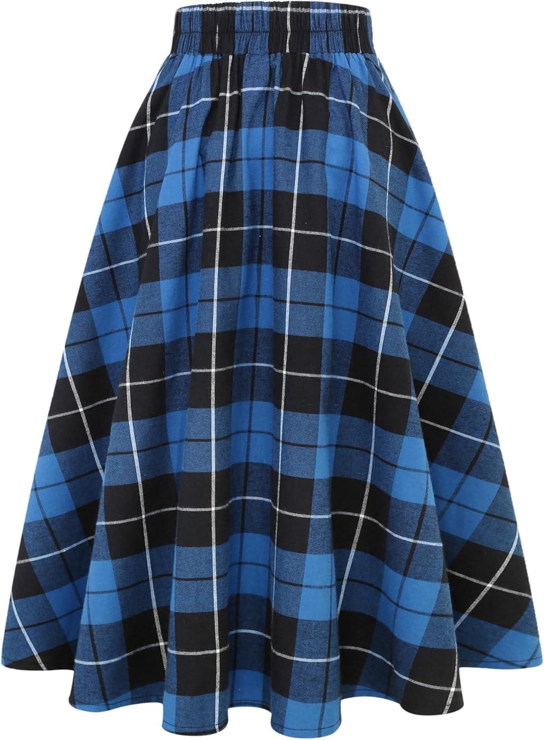 IDEALSANXUN Plaid Skirt for Womens High Waist Aline Pleated Midi Skirts(Blue)