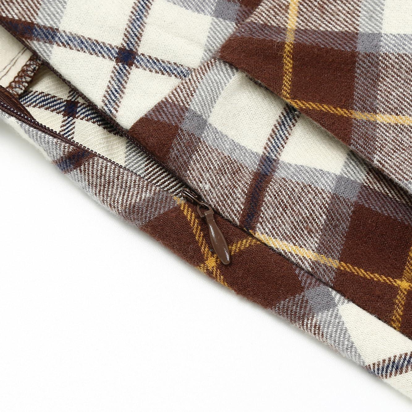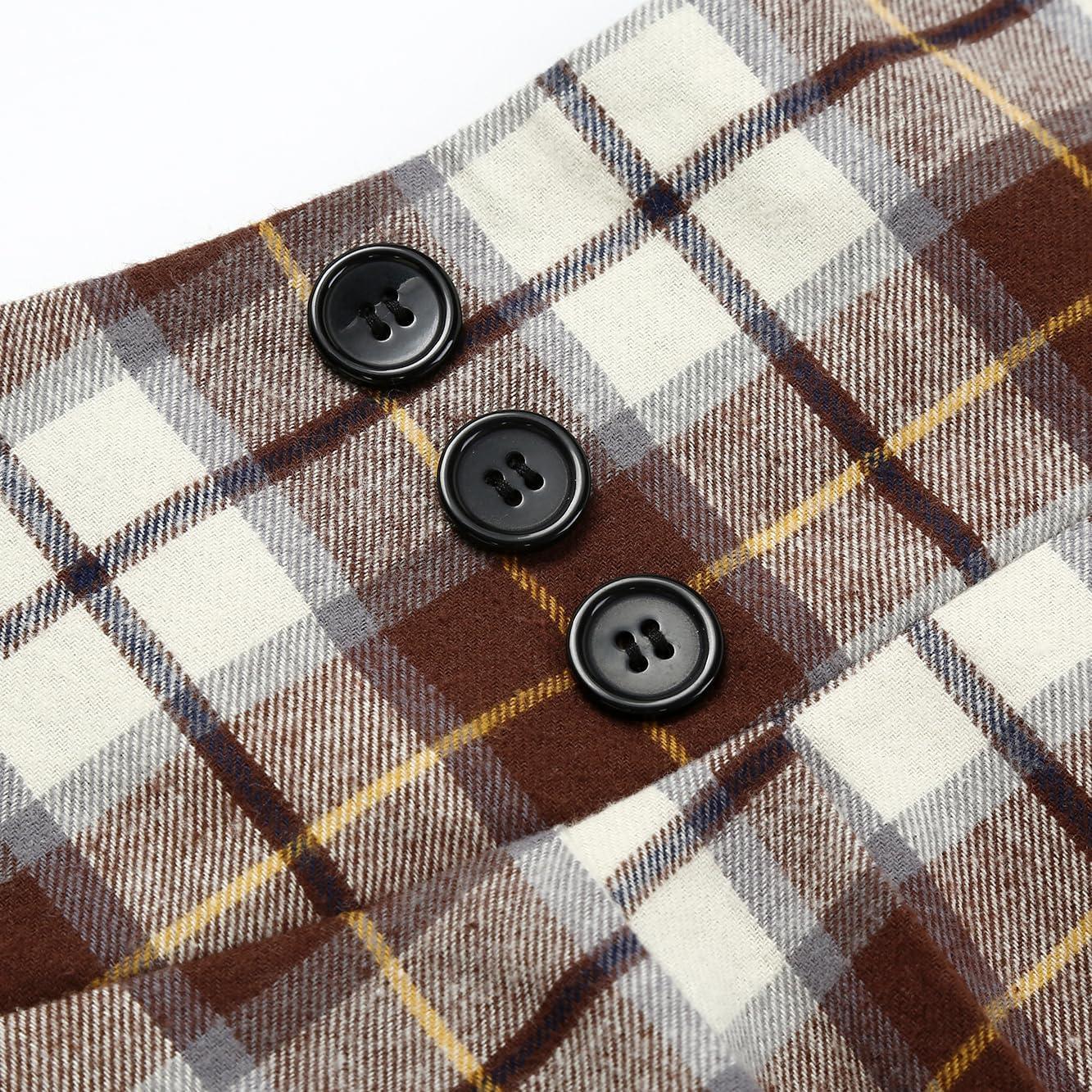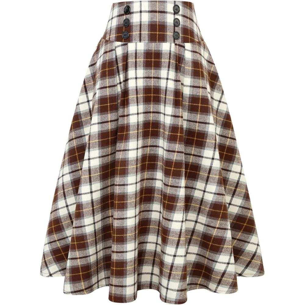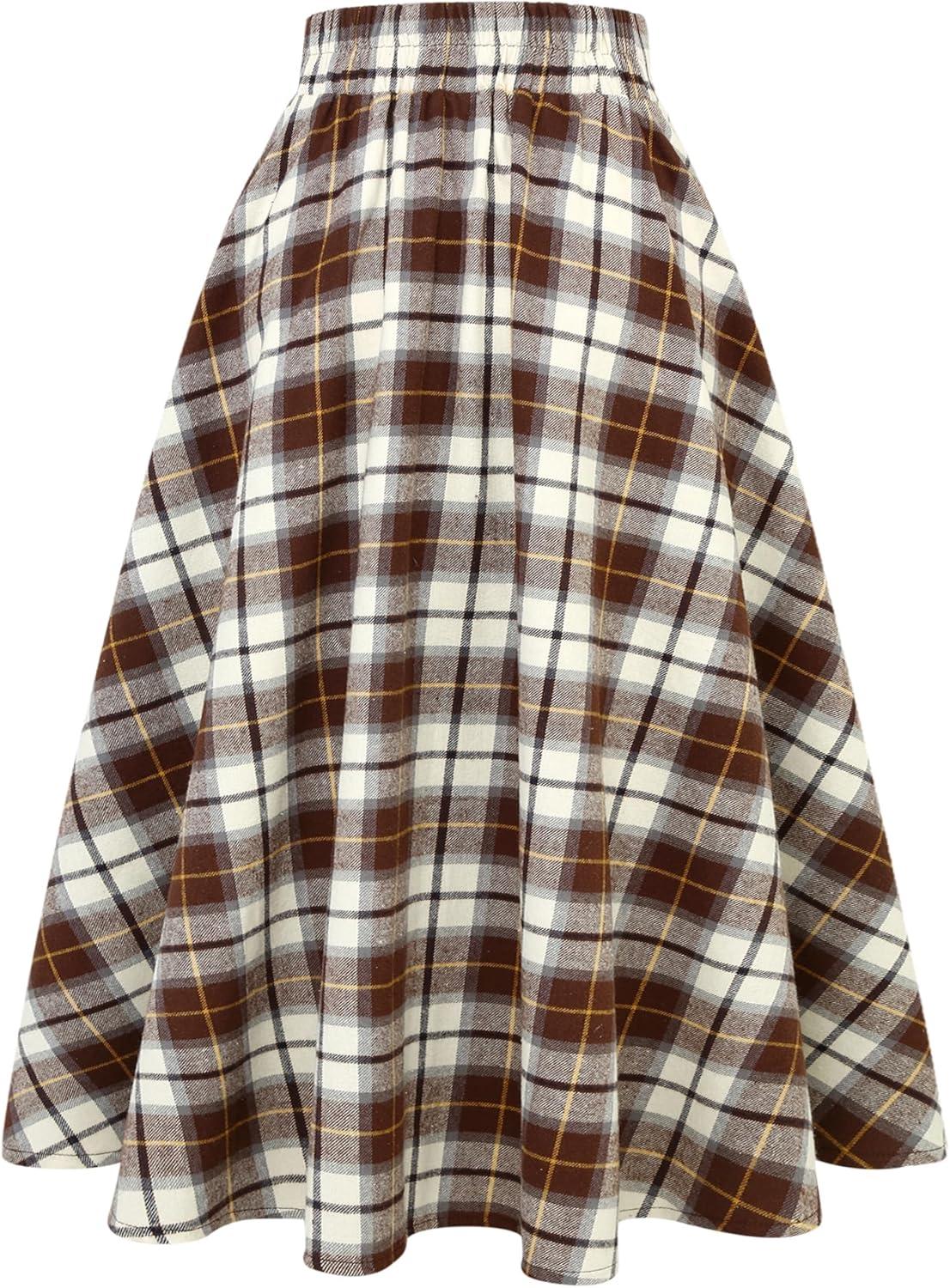 IDEALSANXUN Plaid Skirt for Womens High Waist Aline Pleated Midi Skirts(Coffee)