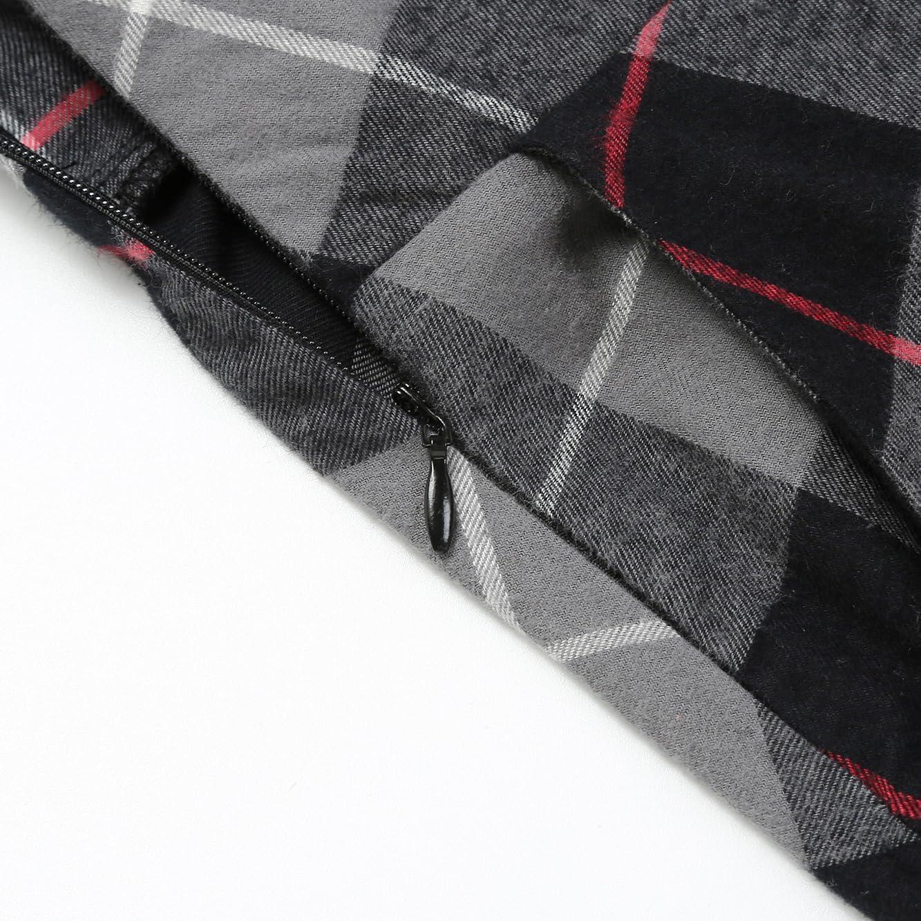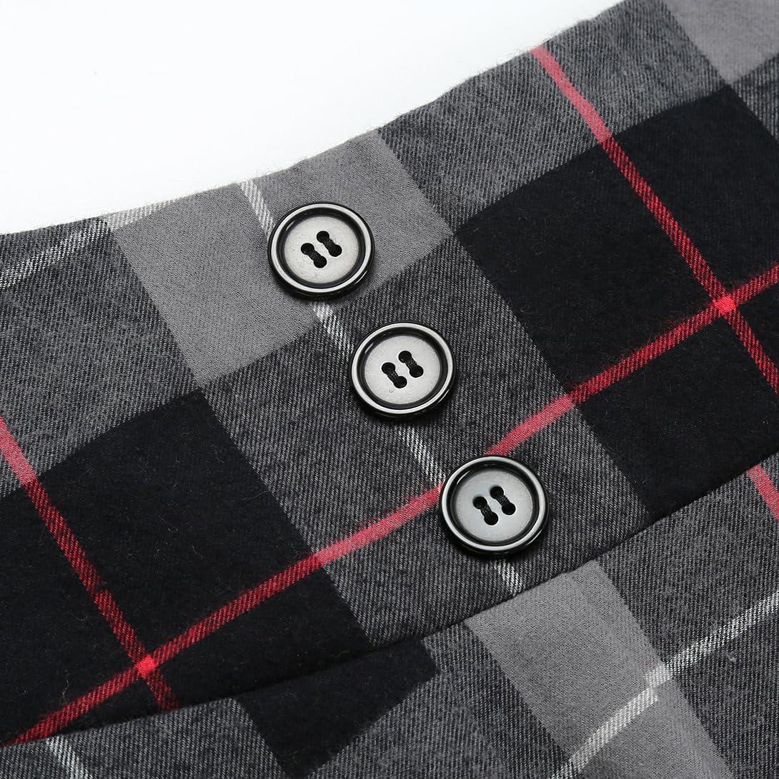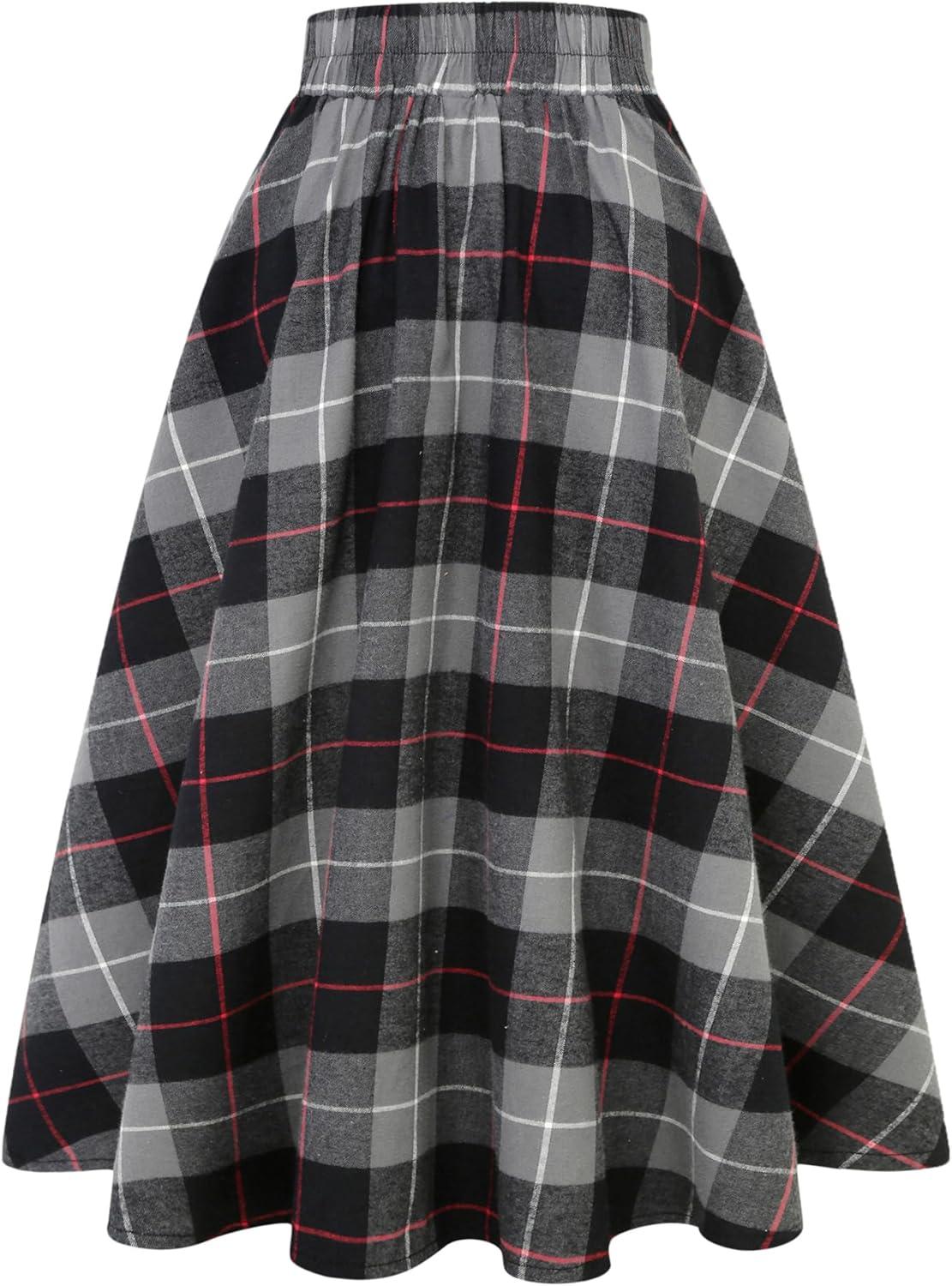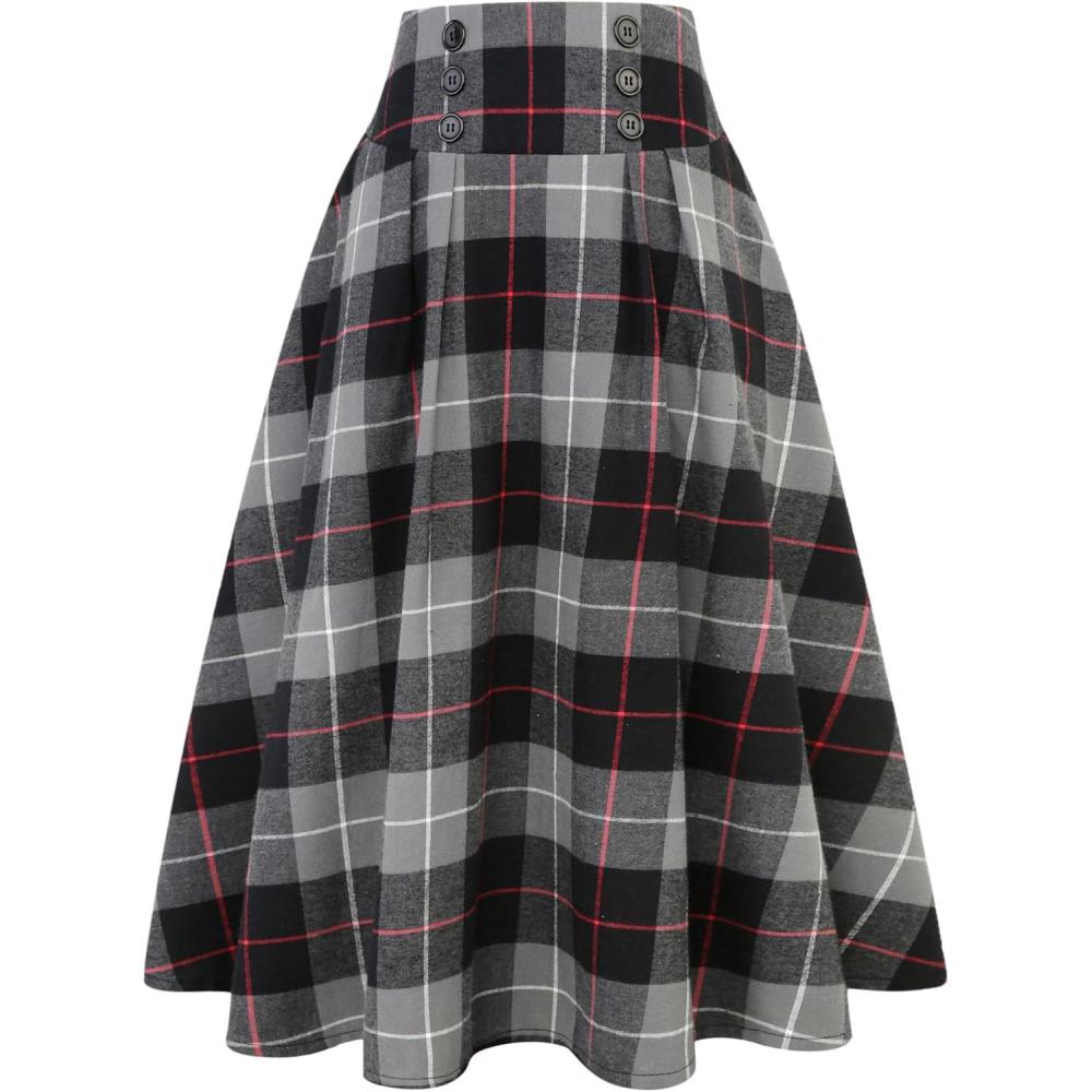 IDEALSANXUN Plaid Skirt for Womens High Waist Aline Pleated Midi Skirts(Dark Grey)