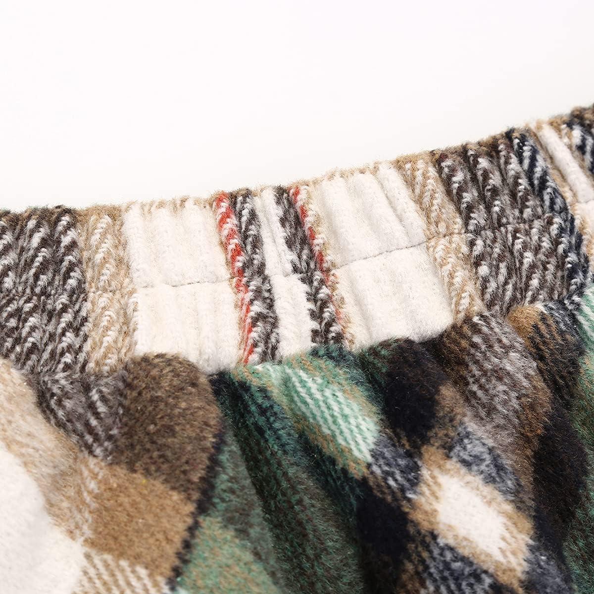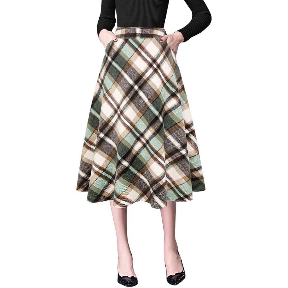 IDEALSANXUN Plaid Skirts for Womens Fall Winter High Waist Aline Pleated Midi Skirts(Green)