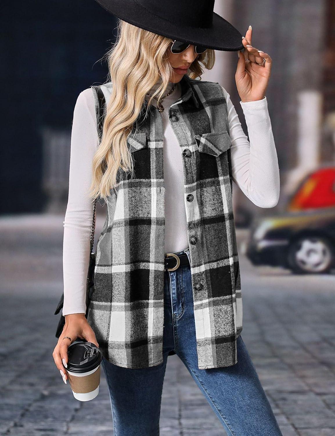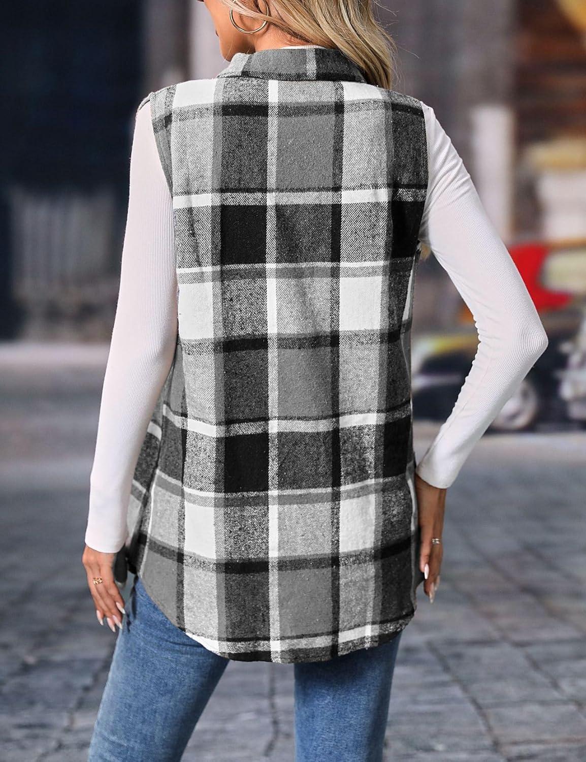 IDEALSANXUN Plaid Vest for Women Fall Winter Flannel Sleeveless Jacket Cardigan Outerwear(Grey)