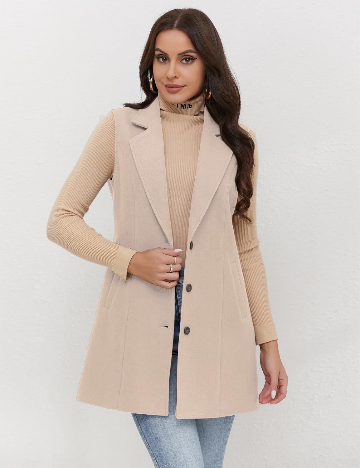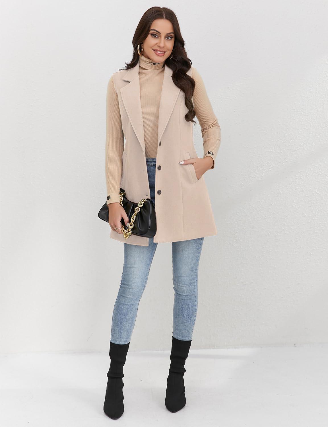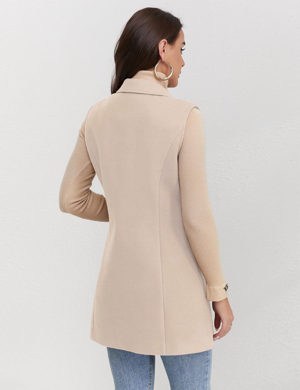 IDEALSANXUN Plaid Vest for Women Fall Winter Sleeveless Blazer Jackets(Pure Beige)